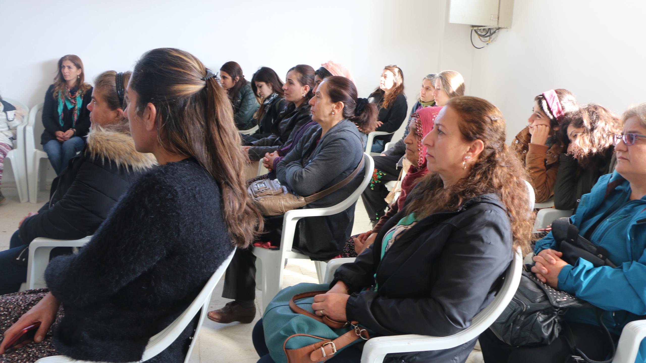 Elmalık Kooperatifi’nde yapılan etkinliğe siyasi parti ve kurum temsilcileri, Peri Belediye Eş Başkanı Songül Doğan, HDP Şırnak Milletvekili Nuran İmir ve çok sayıda kadın katıldı.