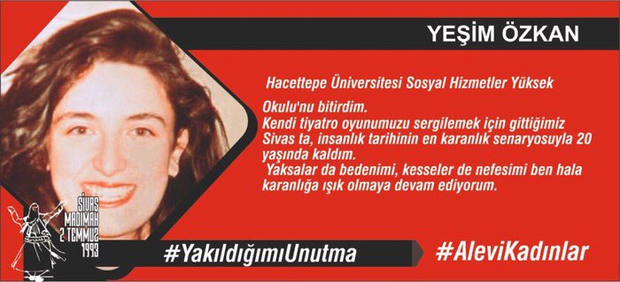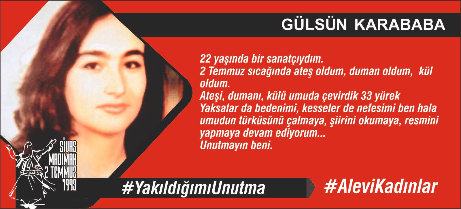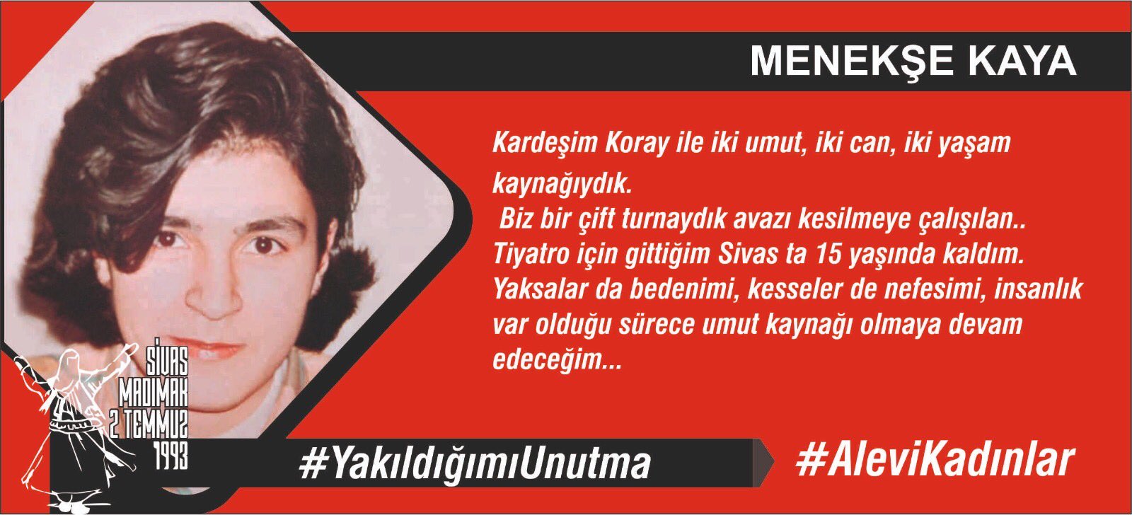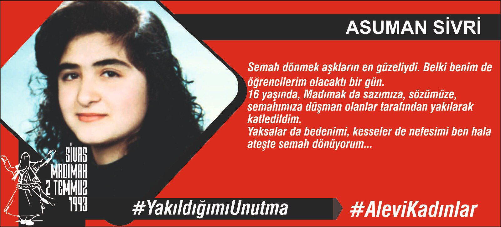 16 yaşında, Madımak da sazımıza, sözümüze, semahımıza düşman olanlar tarafından yakılarak katledildim.