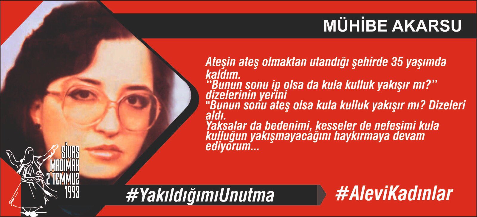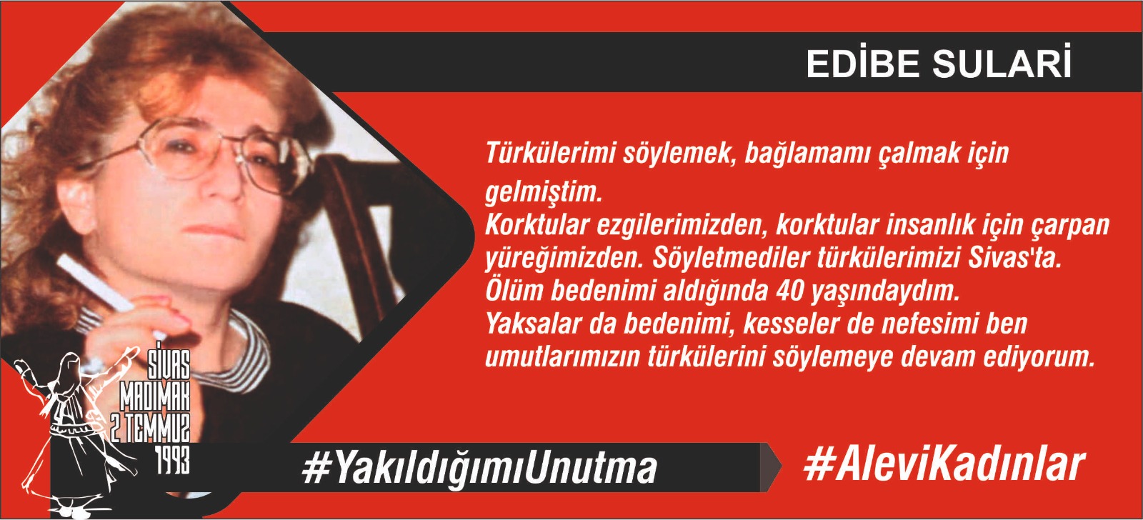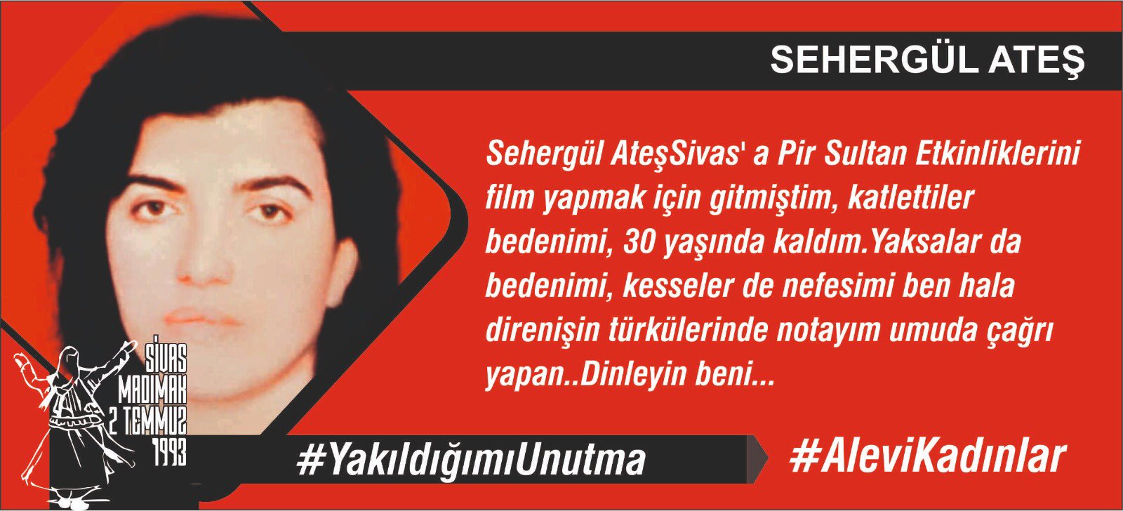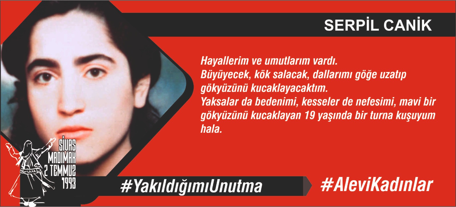 16 yaşında, Madımak da sazımıza, sözümüze, semahımıza düşman olanlar tarafından yakılarak katledildim.