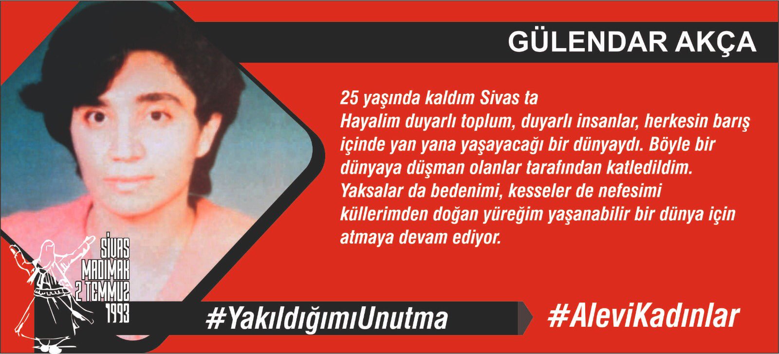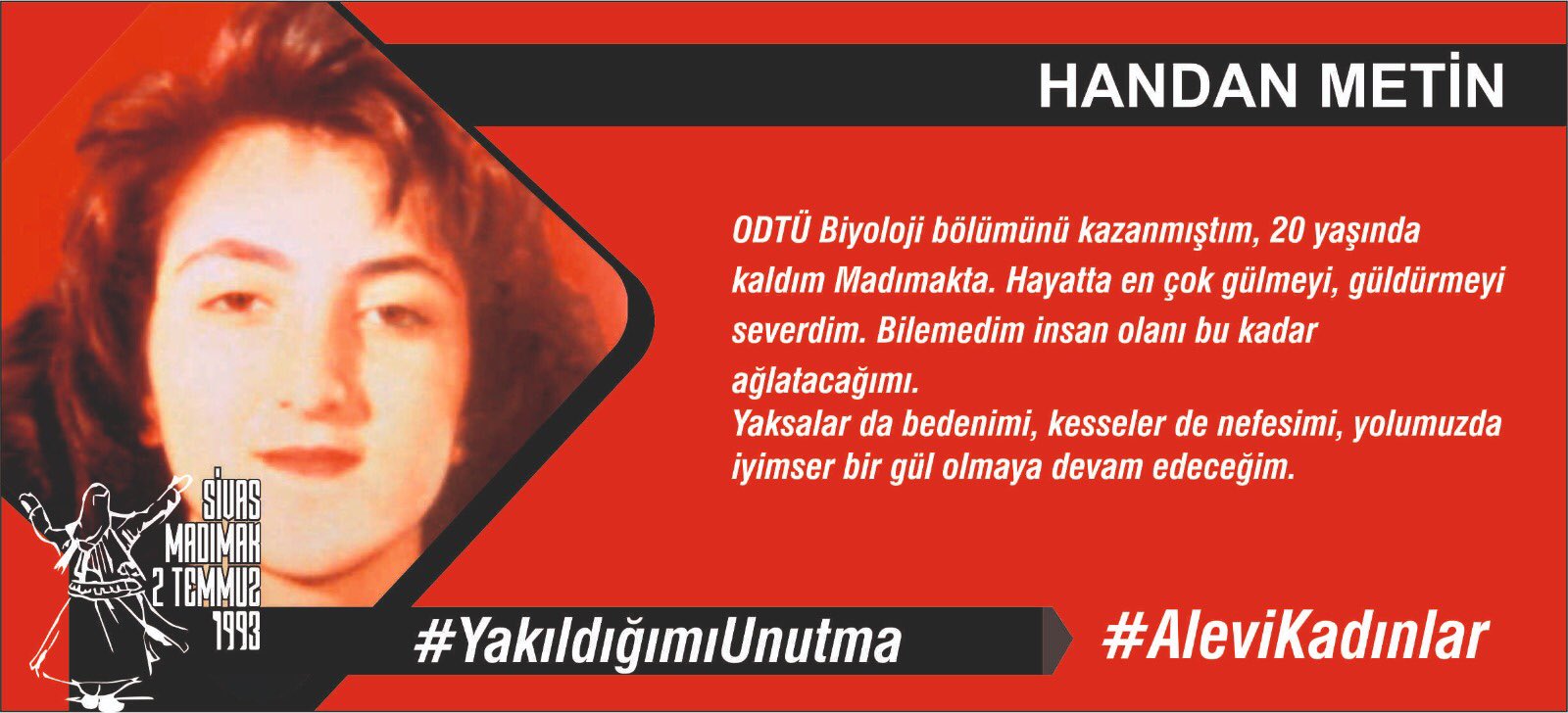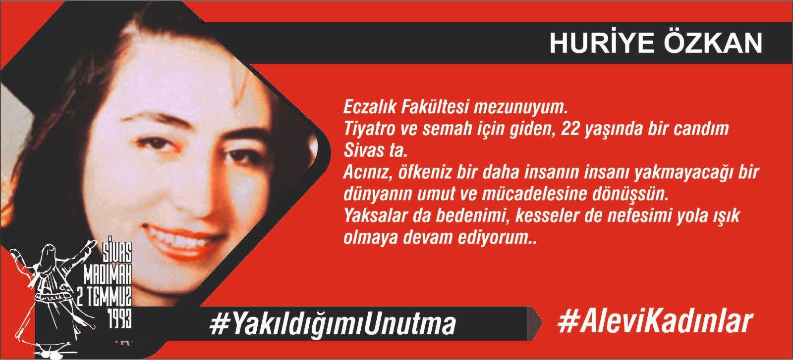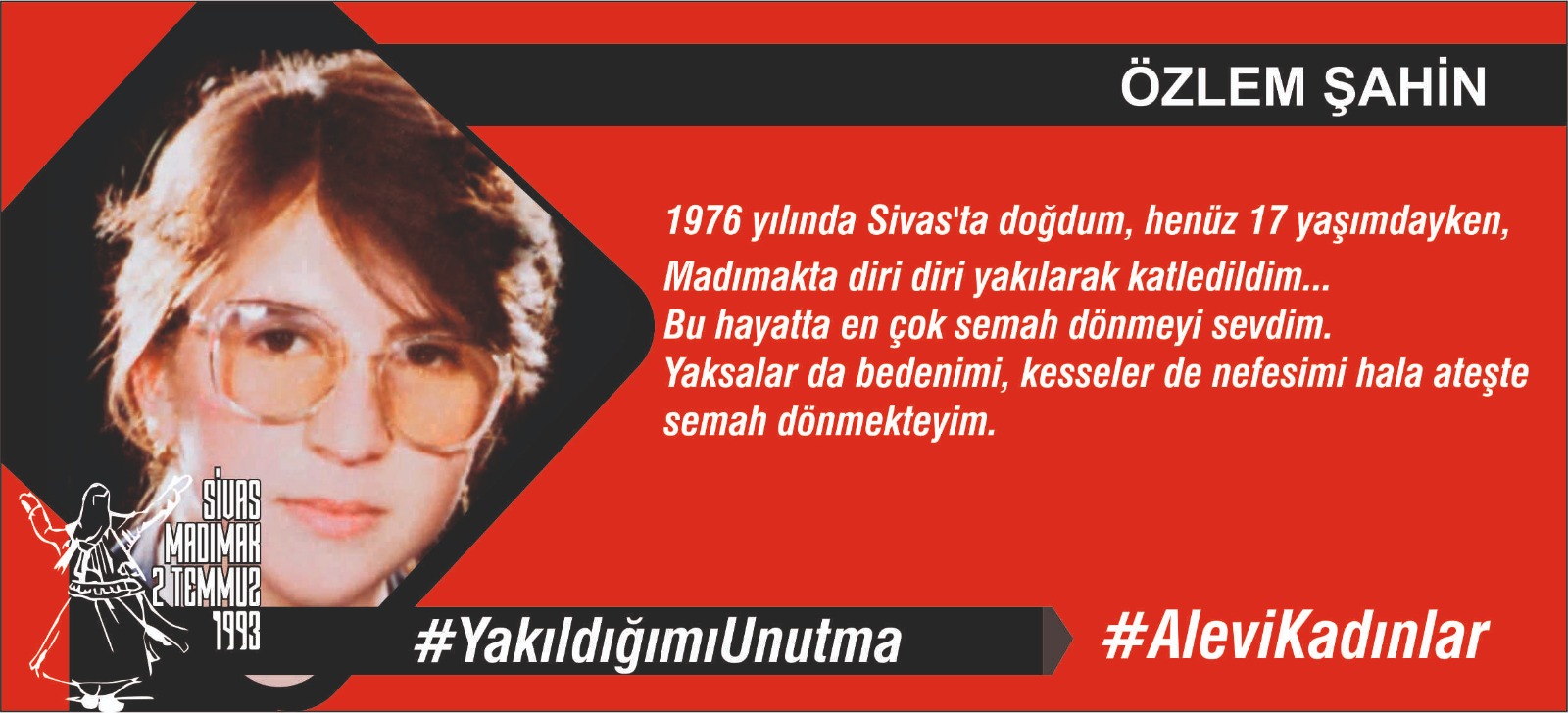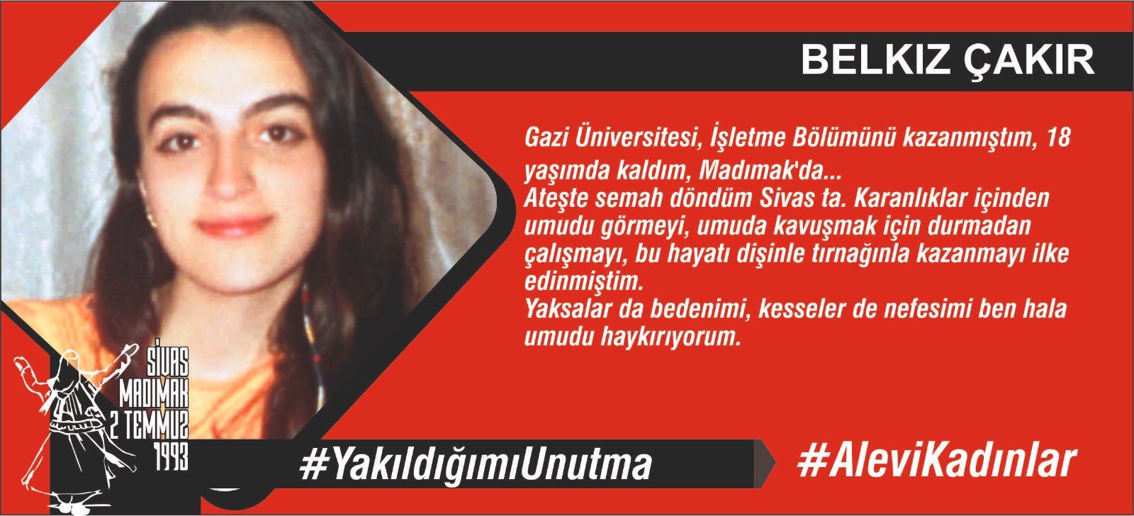 1976 yılında Sivas’ta doğdum, henüz 17 yaşımdayken, Madımakta diri diri yakılarak katledildim…