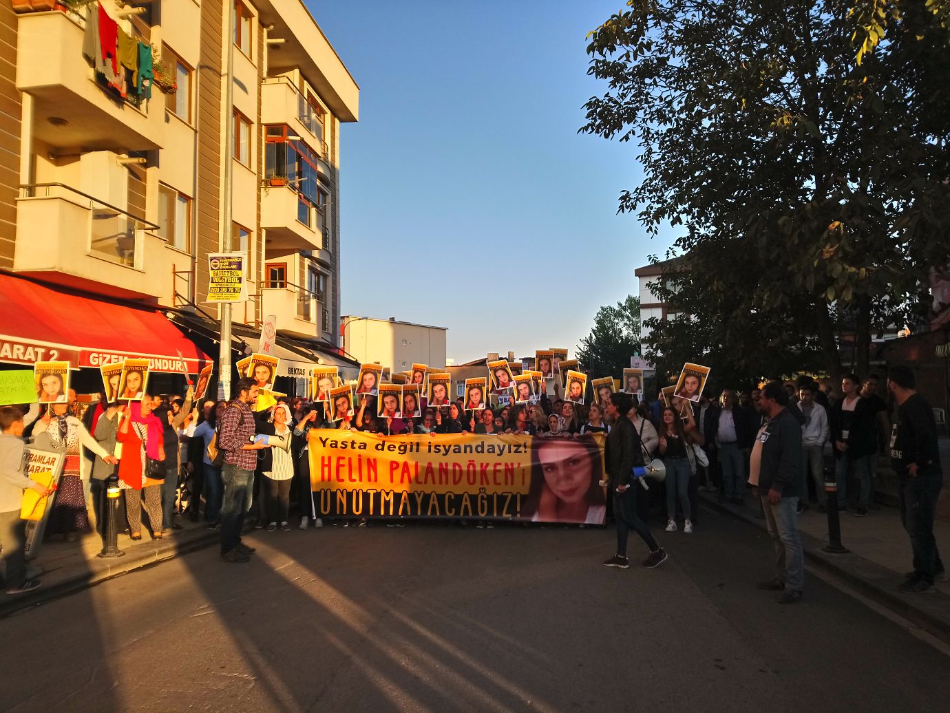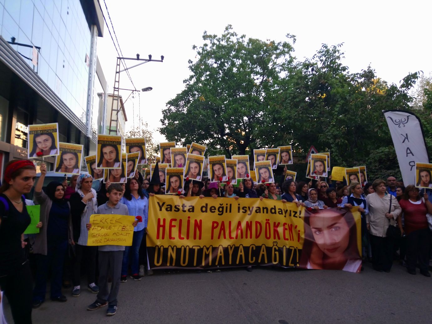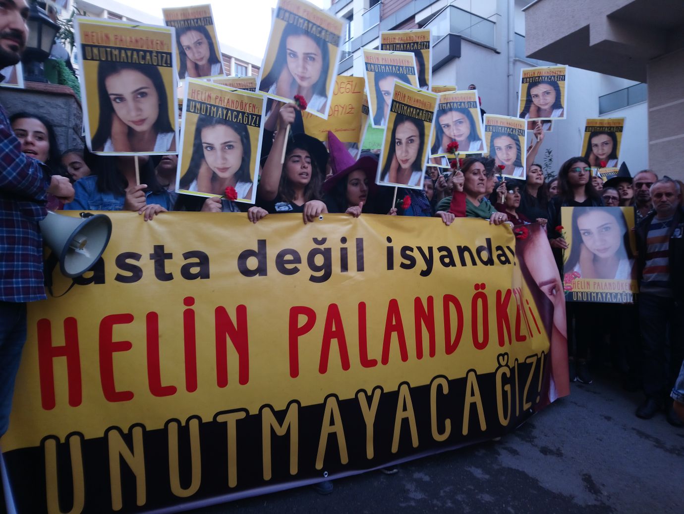“Herkes duysun ve bilsin ki, kız kardeşimiz Helin’in ve katledilen bütün kız kardeşlerimizin hesabını soracağız” diyen Çelik, “Kadın katillerinin cezai indirimlerle elini kolunu sallayarak rahatça gezmesine, asla izin vermeyecek, yaşamımız ve özgürlüğümüz için mücadele edeceğiz. Helin Palandöken cinayetinin tanığı ve takipçisiyiz. İtaat etmiyor başkaldırıyoruz. Helin’in, Özgecan’ın, Cansel’in katledilen bütün kadınların isyanıyız. Kız kardeşimiz Helin Palandöken yetiştiği, büyüdüğü bu mahallenin çocuğu, bu mahallenin canıydı. Herkesin bir şekilde tanıdığı, bildiği, sevdiği Helin’i unutturmayacağız” şeklinde konuştu.