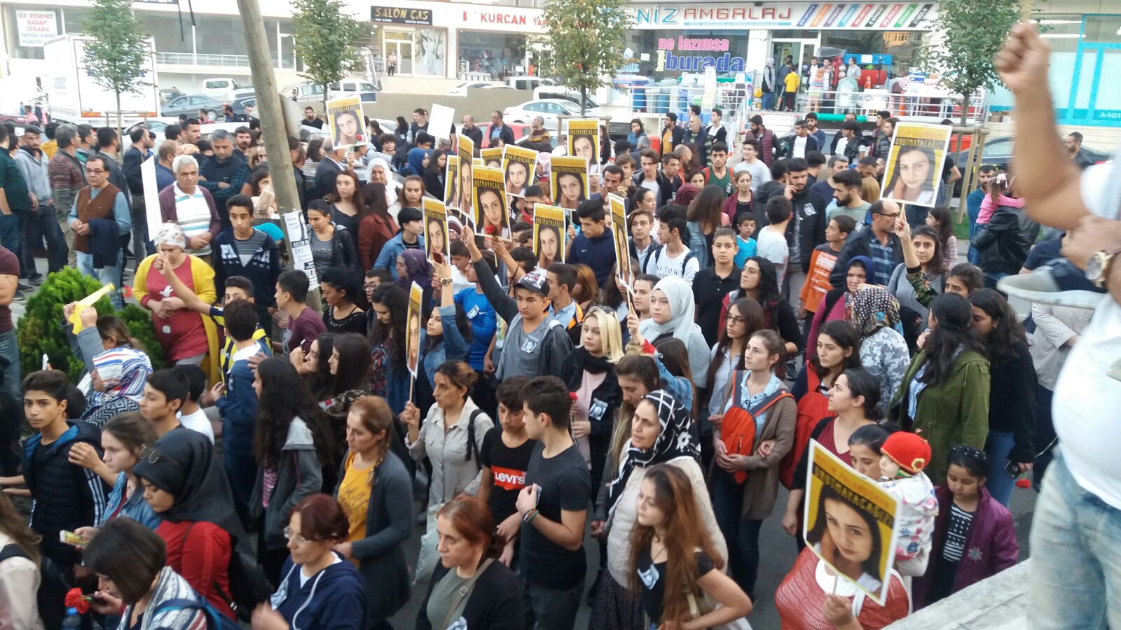 PİRHA-Aydınlı mahalle tepe durağında toplanan yüzlerce kişi Helin Palandöken’in katledilişini kınamak için yaptığı yürüyüşün ardından basın açıklaması düzenlendi.