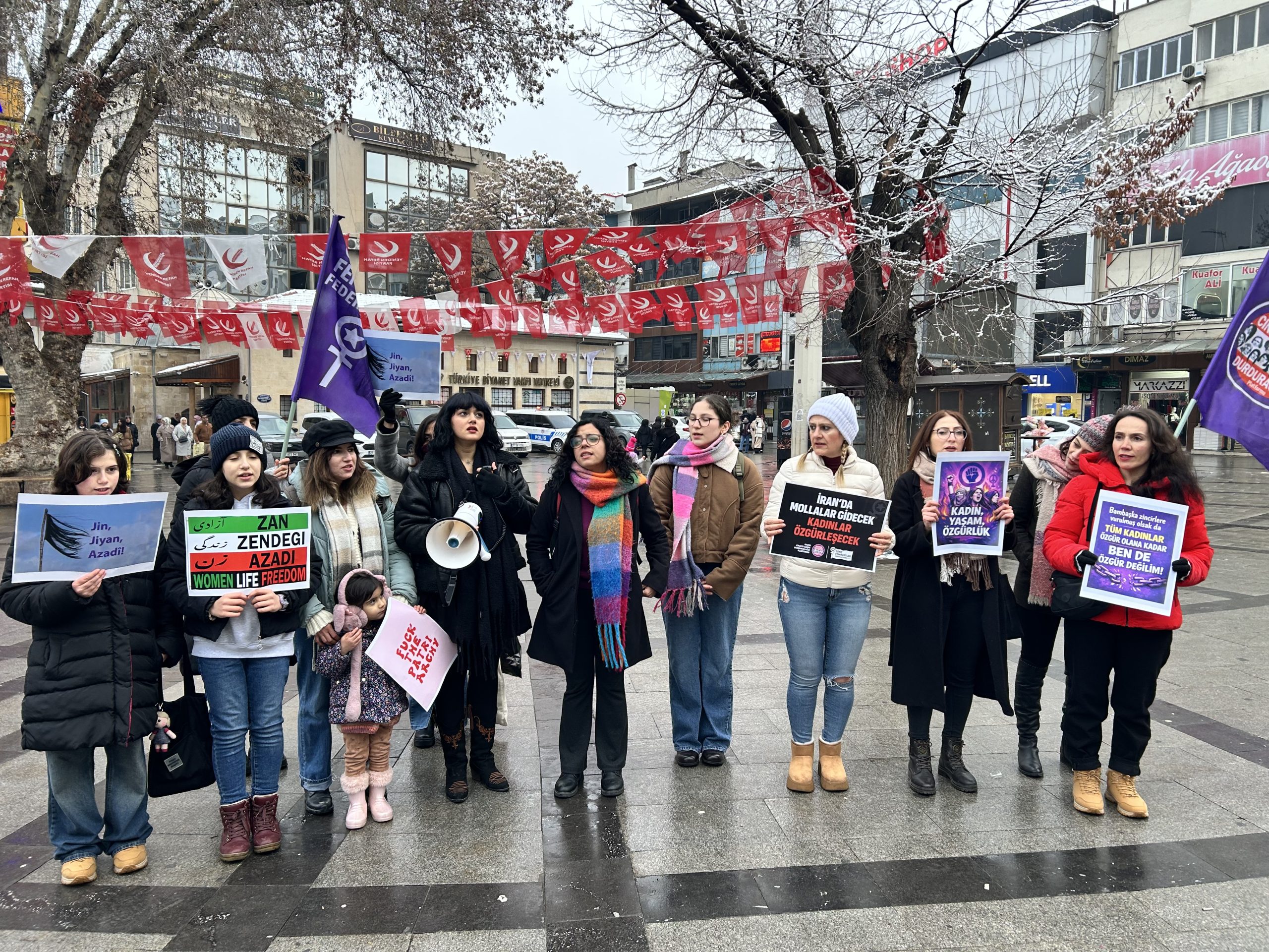 KCDP (Kadın Cinayetlerini Durduracağız Platformu) ve Gaziantep Demokratik Kadın Platformu tarafından, Balıklı Meydanı’nda İranlı ve Rojavalı kadınlar için basın açıklaması yapıldı. “Jin, jiyan, azadi”, “Rojava’ya uzanan eller kırılsın”, “Erkek adalet değil gerçek adalet” sloganlarının atıldığı açıklamanın basın metnini, KCDP Temsilcisi Tuba Aşık ve Gaziantep Demokratik Kadın Platformu Temsilcisi Mihriban Arslan okudu.