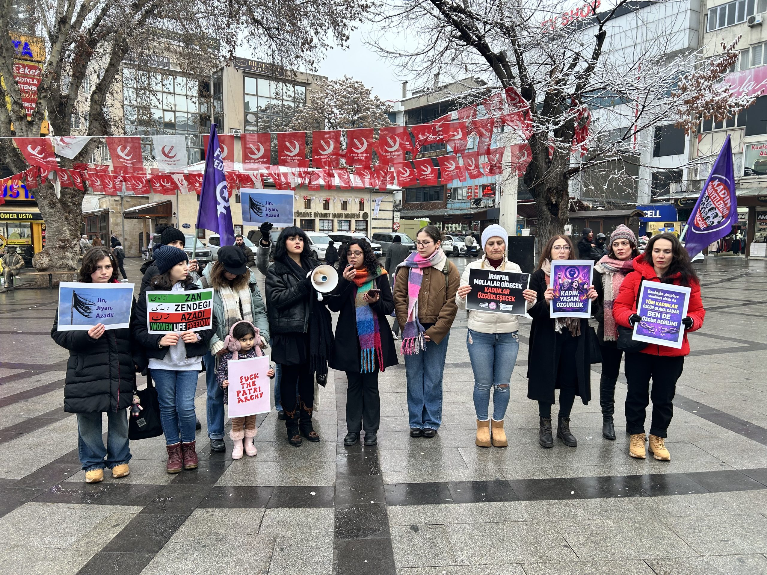 “Suriye’de ise cihatçı yapılar eliyle özellikle Alevi halkına yönelik mezhepçi saldırılar sürmektedir. Bu saldırılar, Alevi kimliğini yok etmeyi hedefleyen gerici ve erkek egemen bir şiddet politikasının parçasıdır. Alevi kadınlar kaçırılmakta, tehdit edilmekte, kamusal yaşamdan silinmek istenmektedir. Kadınların bedenleri burada da savaşın ve mezhepçi nefretin hedefi haline getirilmektedir.”