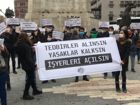 Ne yazık ki iş yerlerimizin kapalı olduğu dönemde, çalışanlara yaşamlarını devam ettirmelerini sağlayacak desteğin sağlanması için yaptığımız eylemleri ve sesimize hükümet duymadı. Sesimizin duyulmasını istiyoruz: İş yerlerini kapatmak bizi açlığa mahkum etmek demektir. Ya hayatımızı idame ettirecek bir destek sağlayın ya da iş yerlerini açın.”