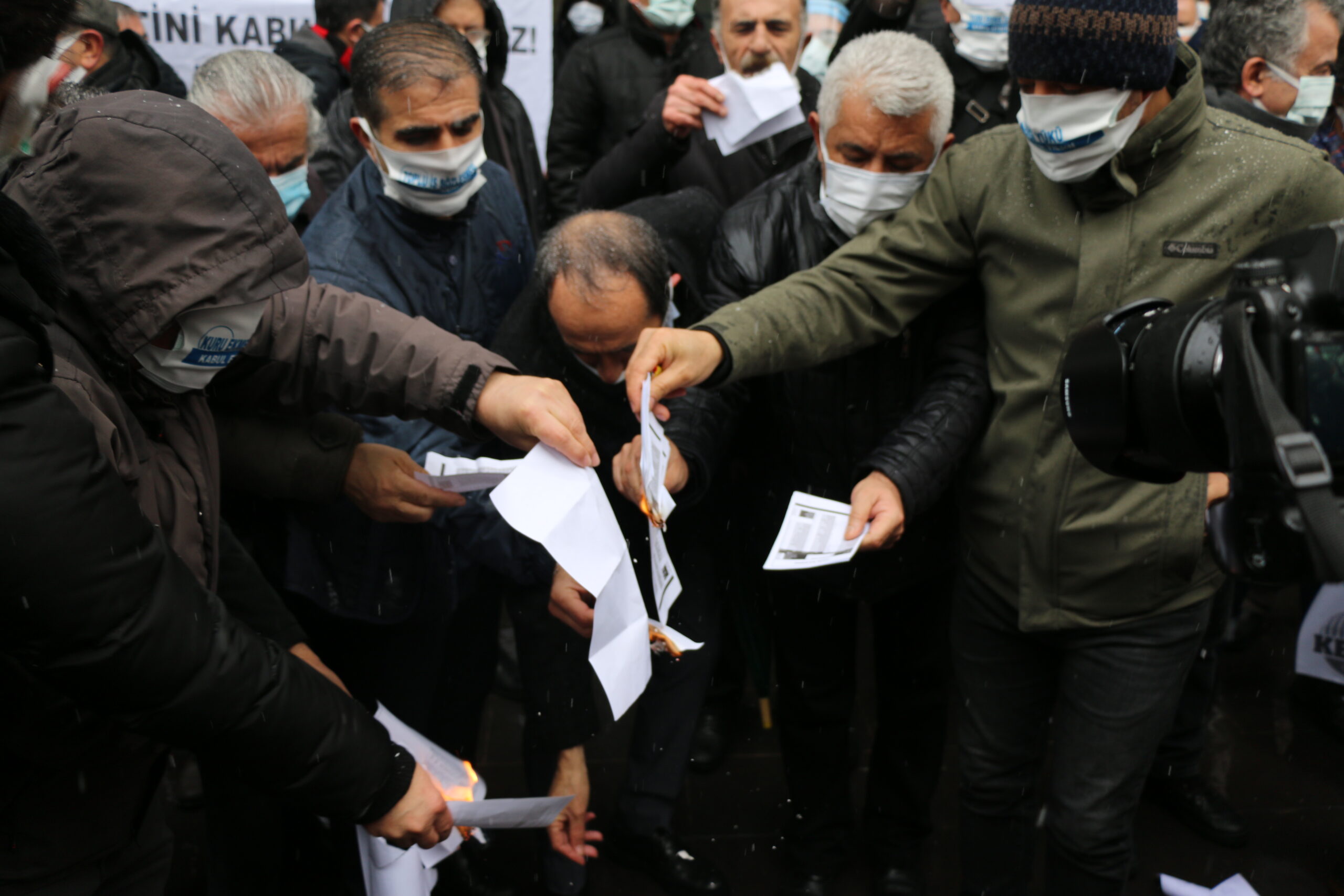Yapılan açıklama ardından kamu çalışanları, verilen zamları protesto ederek maaş bordolarını ateşe verdi.