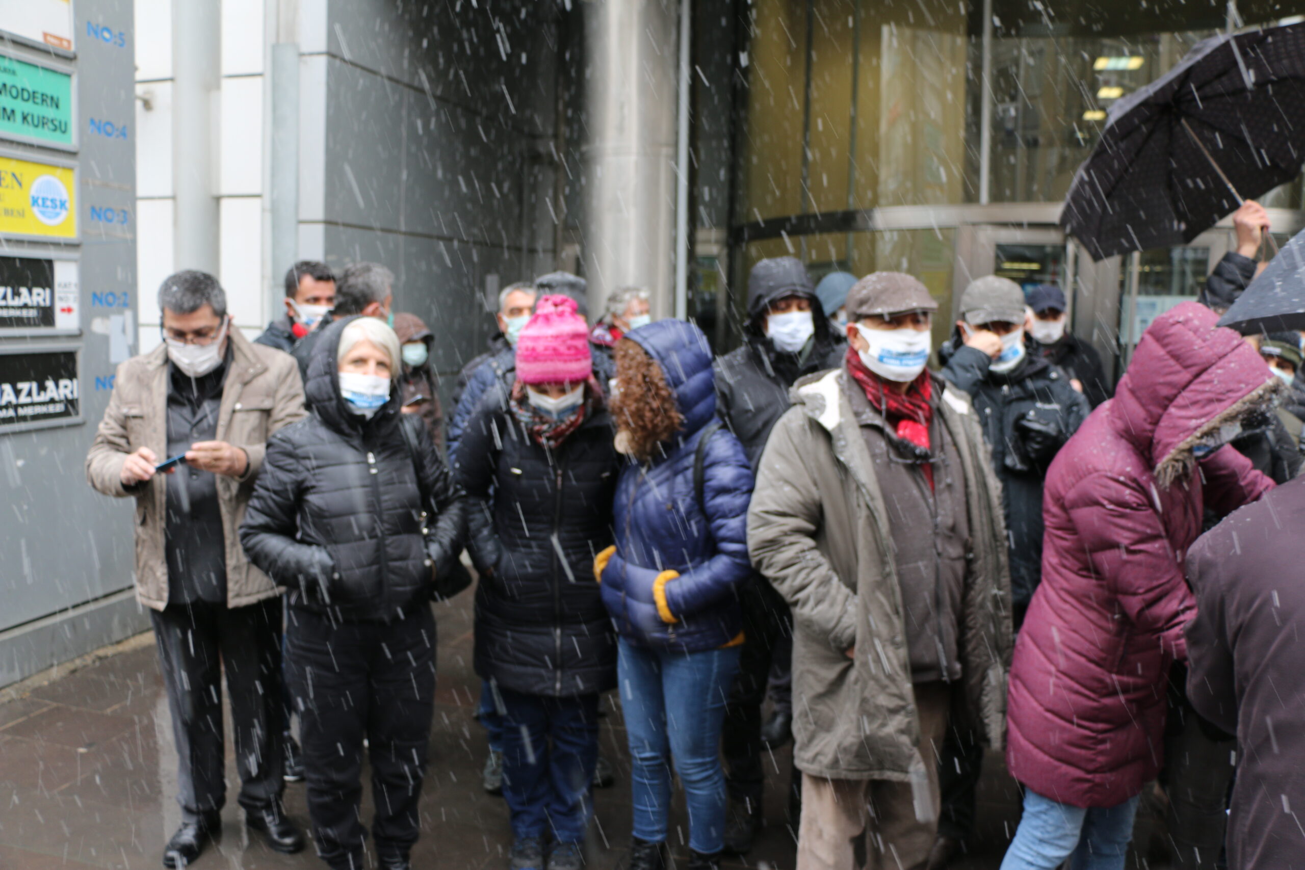 Yapılan müzakereler sonucunda Eğitim Sen 5 Nolu Üniversiteler Şubesi önünde basın açıklaması yapıldı. Yoğun kar yağışına rağmen katılımın güçlü olduğu basın açıklamasına KESK Eş başkanları, Yönetim Kurulu üyeleri ve KESK’e bağlı sendikaların genel başkanları ve sendika üyeleri katıldı.