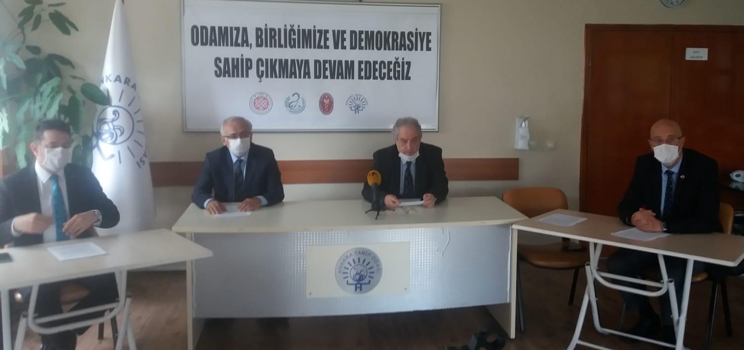 Ankara Diş Hekimleri Odası (ADHO), Ankara Eczacı Odası ( AEO), Ankara Bölgesi Veteriner Hekimleri Odası (AVHO), Ankara Tabip Odası (ATO), iktidarın kamu kurumu niteliğinde tüzel kişiliği olan, anayasal güvence altında olup yasa ile belirlenmiş görevleri yerine getirmek üzere kurulmuş meslek birliklerine karşı tutum ve davranışına ilişkin ortak bir açıklama yaptı.