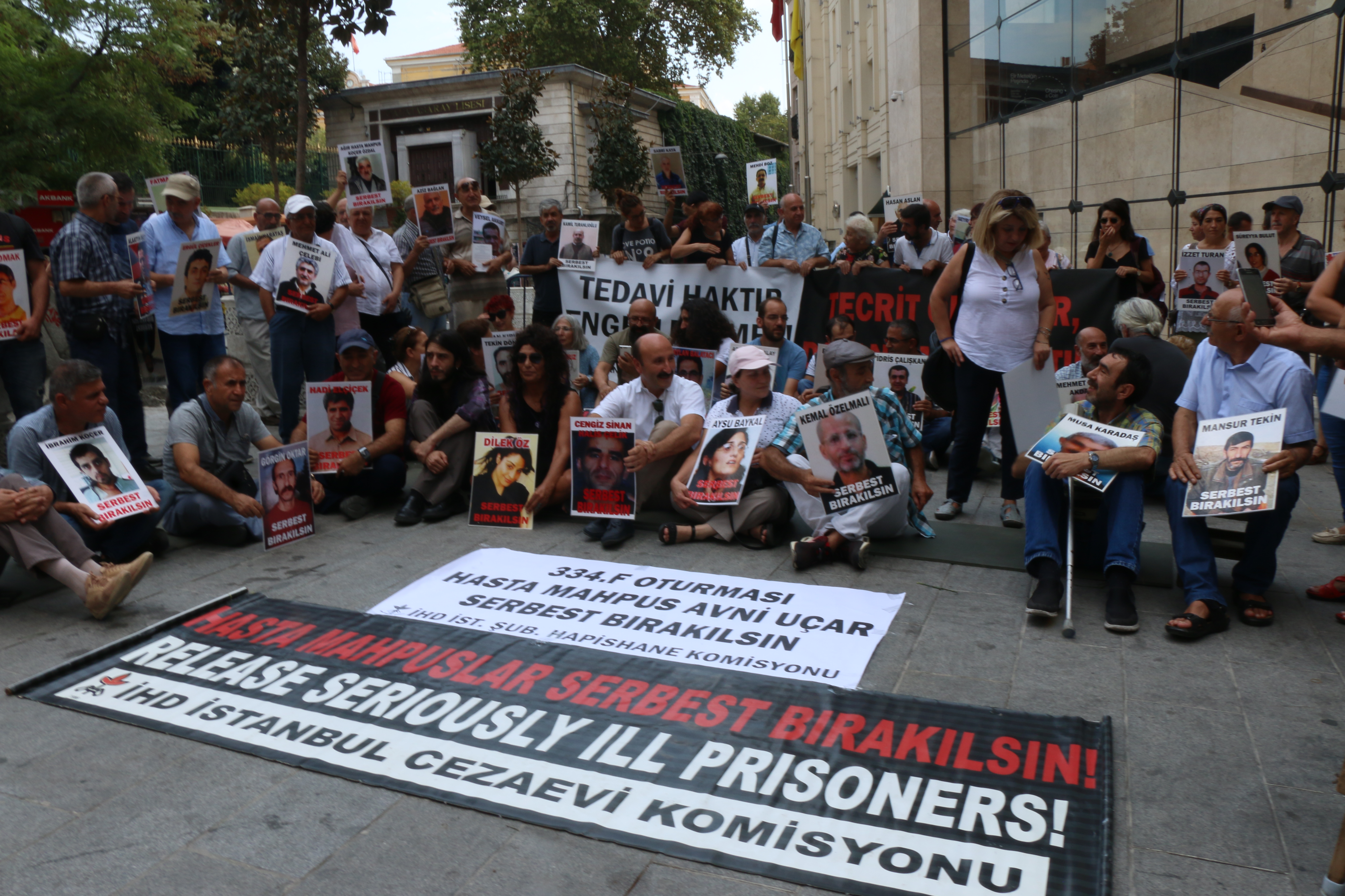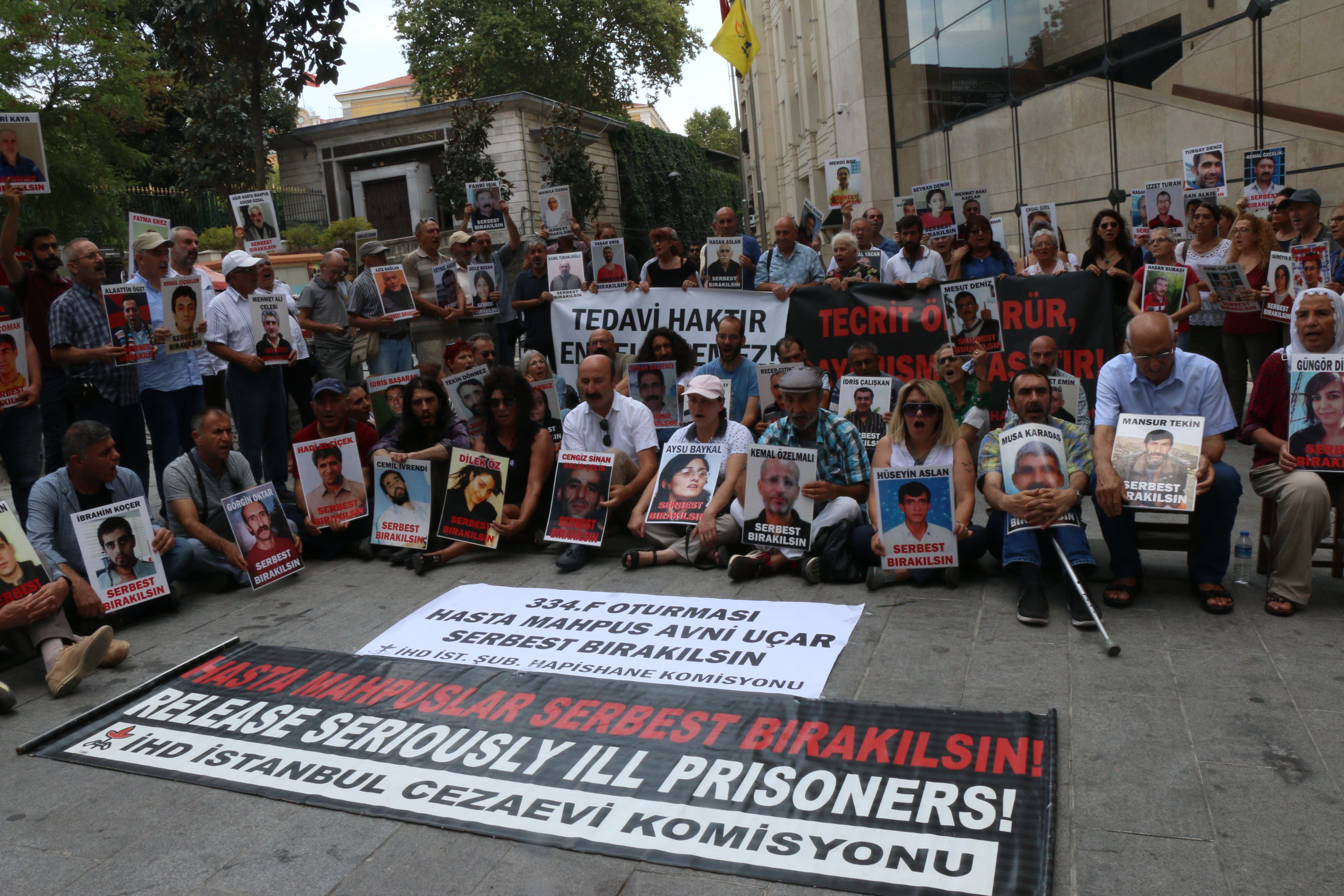 İnsan Hakları Derneği (İHD) İstanbul Şubesi Hapishane Komisyonu’nun hasta tutukluların durumlarına dikkat çekmek amacıyla her hafta düzenlediği F Oturumu eyleminin 334’üncü haftası Galatasaray Meydanı’nda gerçekleşti. Hak savunucuları bu hafta kanser hastası olan tutuklu Avni Uçar’ın serbest bırakılmasını talep etti.