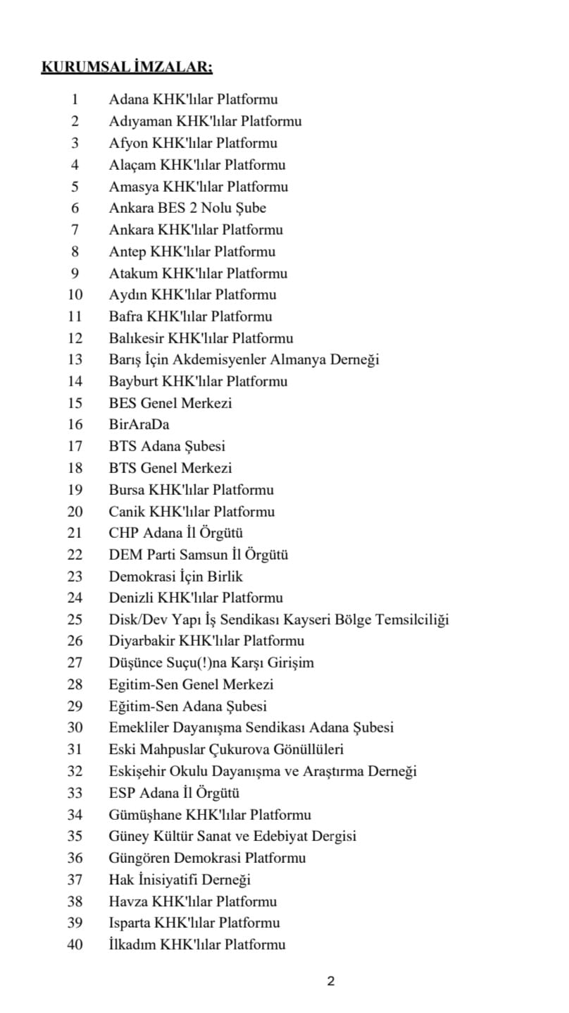 Birçok kurumun ve kişinin imzacısı olduğu açıklamada, herkes “Kanun Hükmü” belgeseline sahip çıkmaya davet edilirken, şu ifadelere yer verildi: