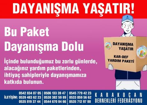 Karakoçan Dernekleri Federasyonu (KAR-DEF) koronavirüs salgını nedeniyle geçim sıkıntısı yaşayan ailelere destek için yardım kampanyası düzenliyor. ‘Dayanışma yaşatır’ denilerek başlatılan kampanyayla Elazığ Karakoçan merkezde ihtiyaç sahibi ailelere destekte bulunulacak.