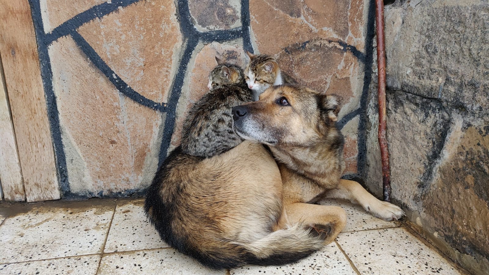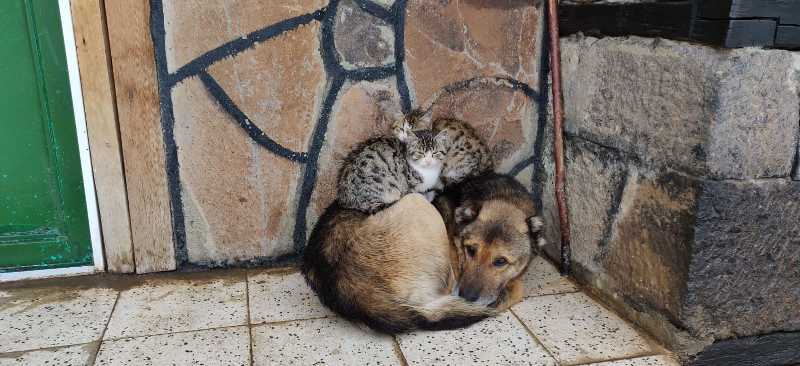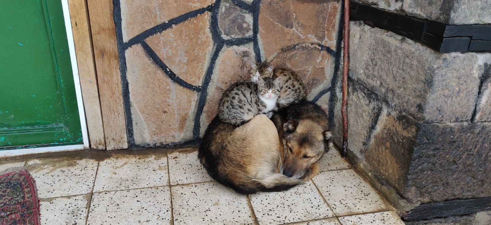 Soğuk kış günlerini birbirine sokularak geçirmeye çalışan iki kedi ve bir köpeğin görüntüleri kameramıza takılıyor. Kedi ve köpeklerin dost olduğu ender görüntülerden birine tanık oluyoruz.