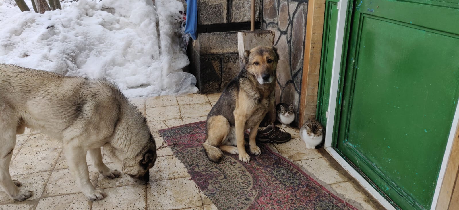 Yaşlı kadının anlattığına göre bütün kışı böyle birbirine sokularak geçirmişler. O nereye gidiyorsa onlar da peşinde. Xemsiya Ana, “Şu kabın içinde günde iki defa kedilere yemek veriyorum, bu kabın içinde de günde iki defa siyah köpeğe yemek veriyorum” diyerek elindeki kapları gösteriyor.
