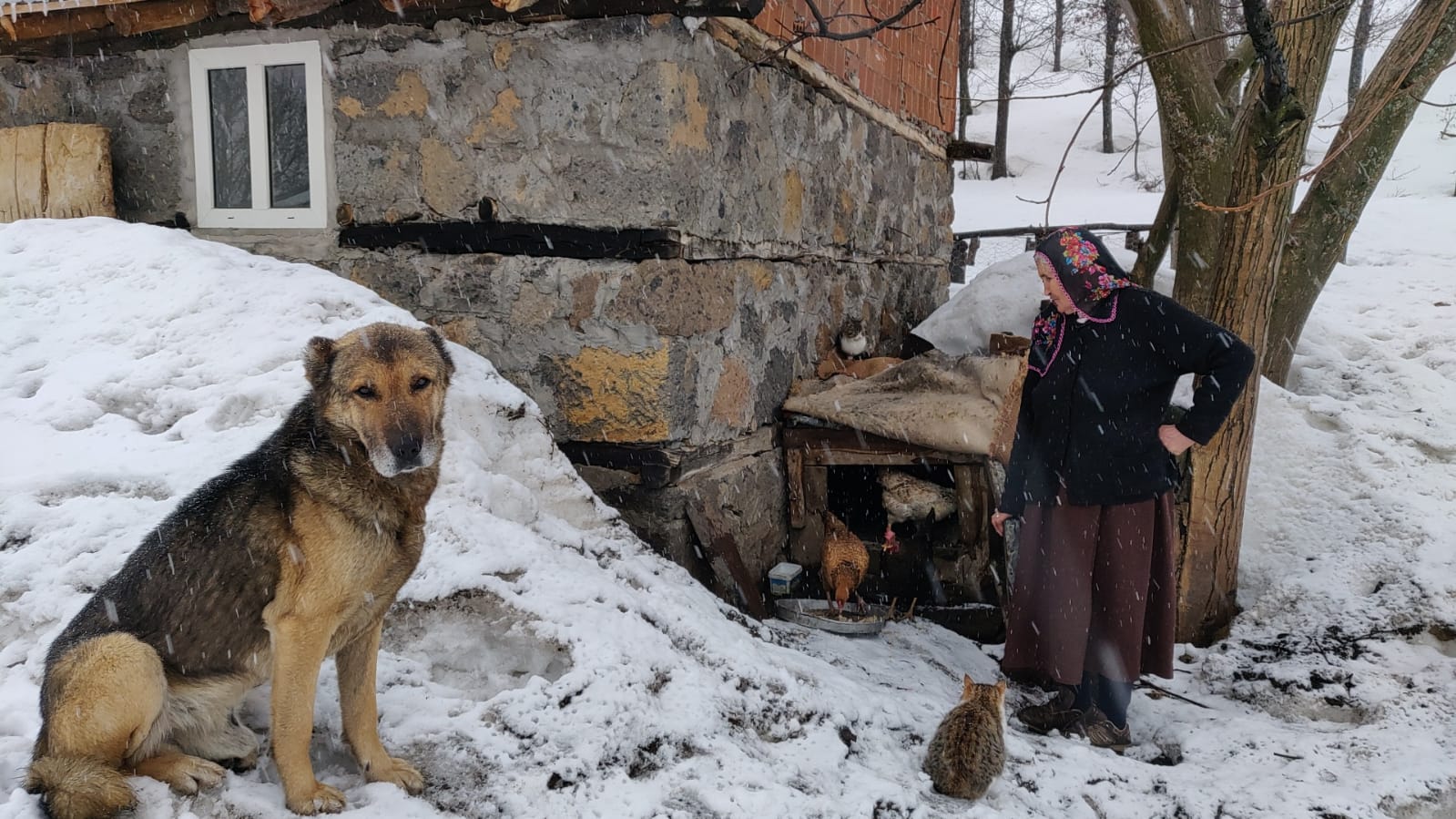 Kapısını açıp yiyebilecekleri bir şeyler koyuyor tavukların önüne. Bu kış tavuklarının pek yumurtlamadığından yakınıyor. Sonra da yalnız geçirdikleri kışı nasıl zor koşullarda geçirdiklerini anlatıyor. “Kar komşulara gidişimize izin vermiyordu. Arada bir çıkıp komşulara sesimi duyurmak için bağırıyordum. Bazen duyurabiliyor bazen de günlerce haber alamıyorduk birbirimizden” diyor.