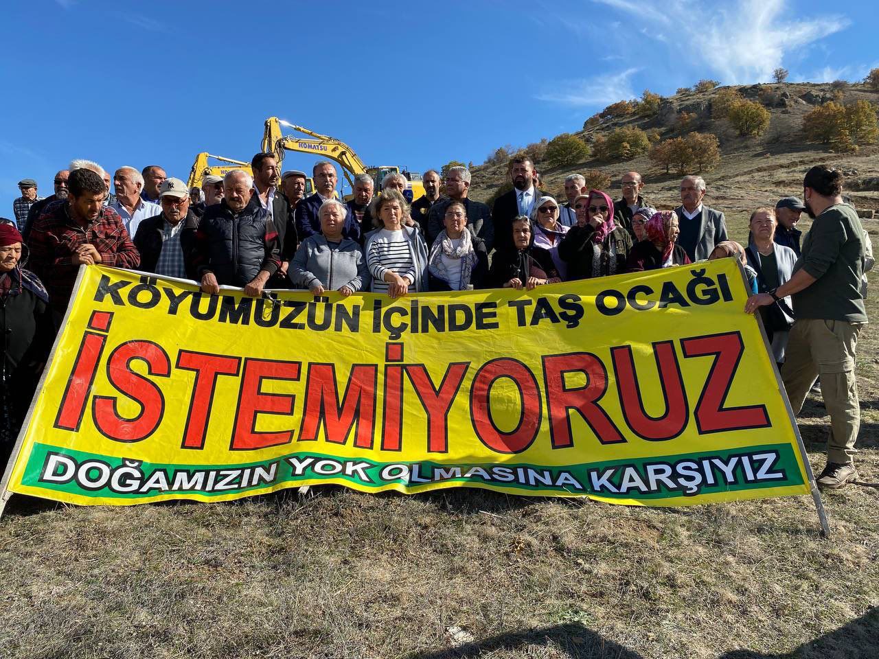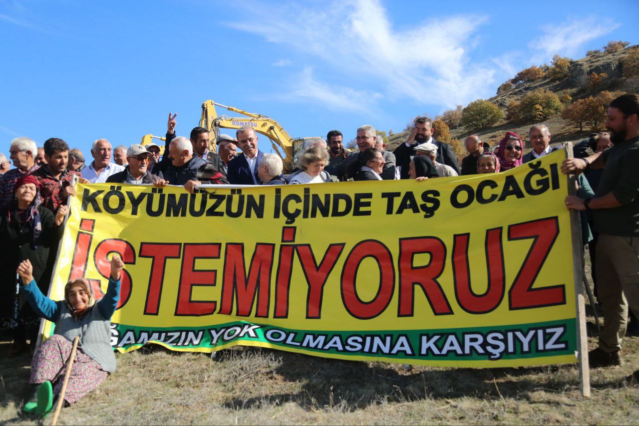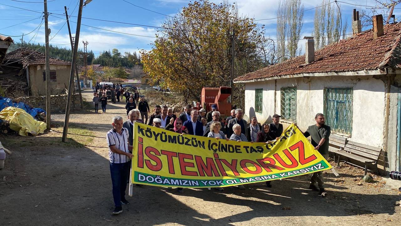 Çelikler Holding, Ankara-Samsun hızlı tren hattı projesinin yapımında kullanmak için Çorum’un Sungurlu ilçesine bağlı Karakaya köyünde taş ocağı ve kırma-eleme tesisi açmak istiyor. Köyün tarım ve hayvancılık alanını tehdit eden proje Karakayalı’lar tarafından yürütmeyi durdurma talebiyle mahkemeye taşınırken, devam eden yargı sürecine rağmen Çelikler Holding bölgede şantiye kurarak çalışmalara başladı. Karakaya halkı, tarım alanlarına uzak bir bölgeyi alternatif olarak önerdiklerini fakat şirketin kabul etmediğini aktaran Karakaya halkı, planlanan taş ocağını protesto etmek için Karakaya Muhtarlığı’nın önünden yürüyüş düzenledi. “Direne direne kazanacağız”, “Çelikler Holding köyümüzden defol” sloganlarının atıldığı yürüyüşün ardından Karakaya’lılar, iş makinalarının önünde açıklama gerçekleştirdi.