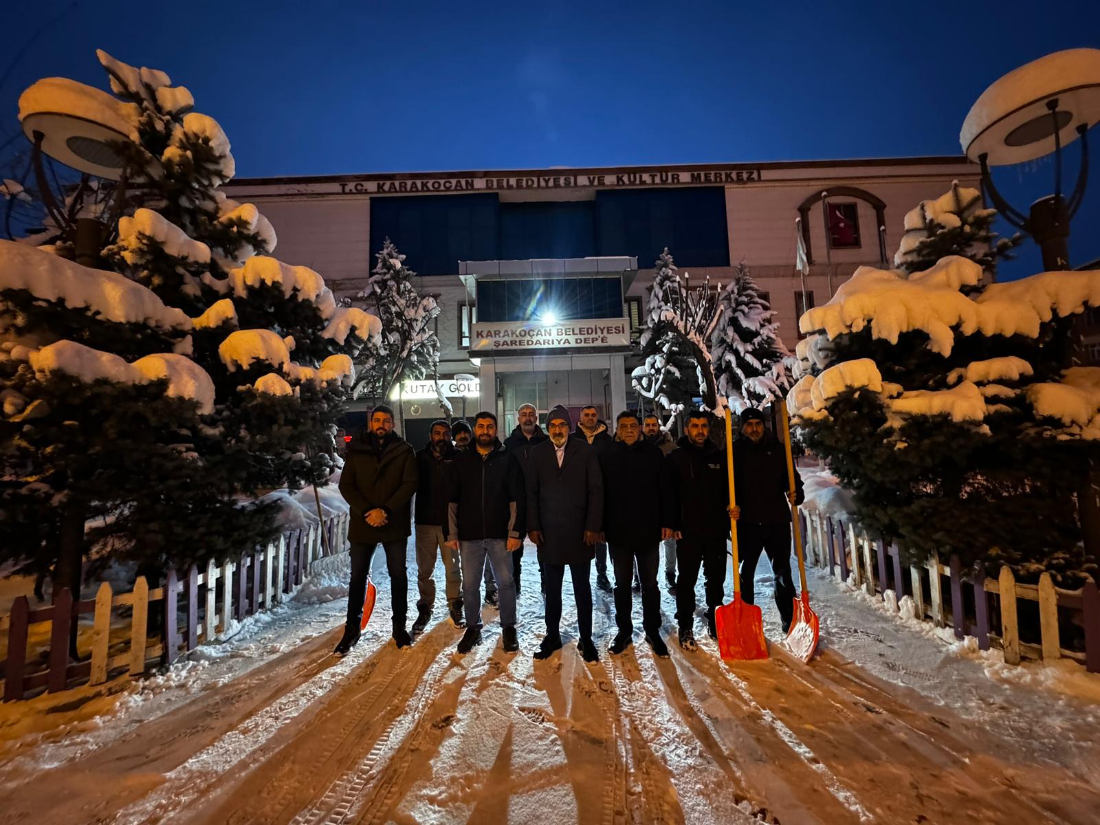 Elazığ’ın Karakoçan ilçesinde etkili olan yoğun kar yağışının ardından, Karakoçan Belediyesi halkın yaşamının aksamaması için erken saatlerde çalışmalarına başladı. Belediyeye bağlı saha emekçileri sabah saat 05.00 itibarıyla görev başına geçerken, büro emekçileri de 07.00 itibarıyla mesaiye başladı. Kar küreme, yol açma ve buzlanmaya karşı tuzlama çalışmalarının titizlikle yürütüldüğü süreçte, Karakoçan Belediyesi Eş Başkanları Eda Durmuş ve Cafer Oğur, sabahın ilk saatlerinden itibaren saha emekçileriyle birlikte sahada yer aldı. Eşbaşkanlar, yürütülen çalışmaları yerinde inceleyerek emekçilerden bilgi aldı.