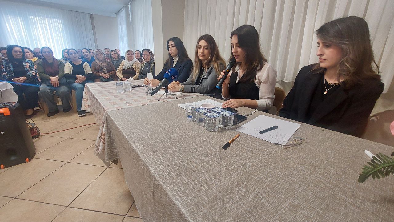 PİRHA – KAR-DEF tarafından düzenlenen kadın konferansında şiddetin türleri ve kadınların hakları konusunda sunumlar yapıldı. 2025 yılında katledilen Sinem Çeşim cinayetini de gündemleştiren kadınlar, “işlenen bu ağır suçun takipçisi olacağımızı; kadına yönelik şiddetin karşısında durmaya devam edeceğimizi kamuoyuna duyuruyoruz” dedi.