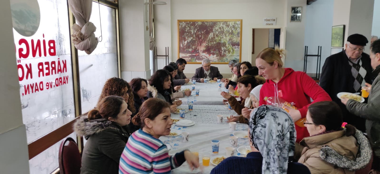 PİRHA- Bingöl Karer Köyleri Yardımlaşma ve Dayanışma Derneği İstanbul Küçükköy’de Hızır lokması verdi. Pir İbrahim Erdoğan’ın Kürtçe verdiği lokma duasını verdiği etkinliğe HDP’nin Sultangazi Belediyesi Eş Başkan adayları Cevdet Konak ile Aygül Sincar Karataş da katıldı.