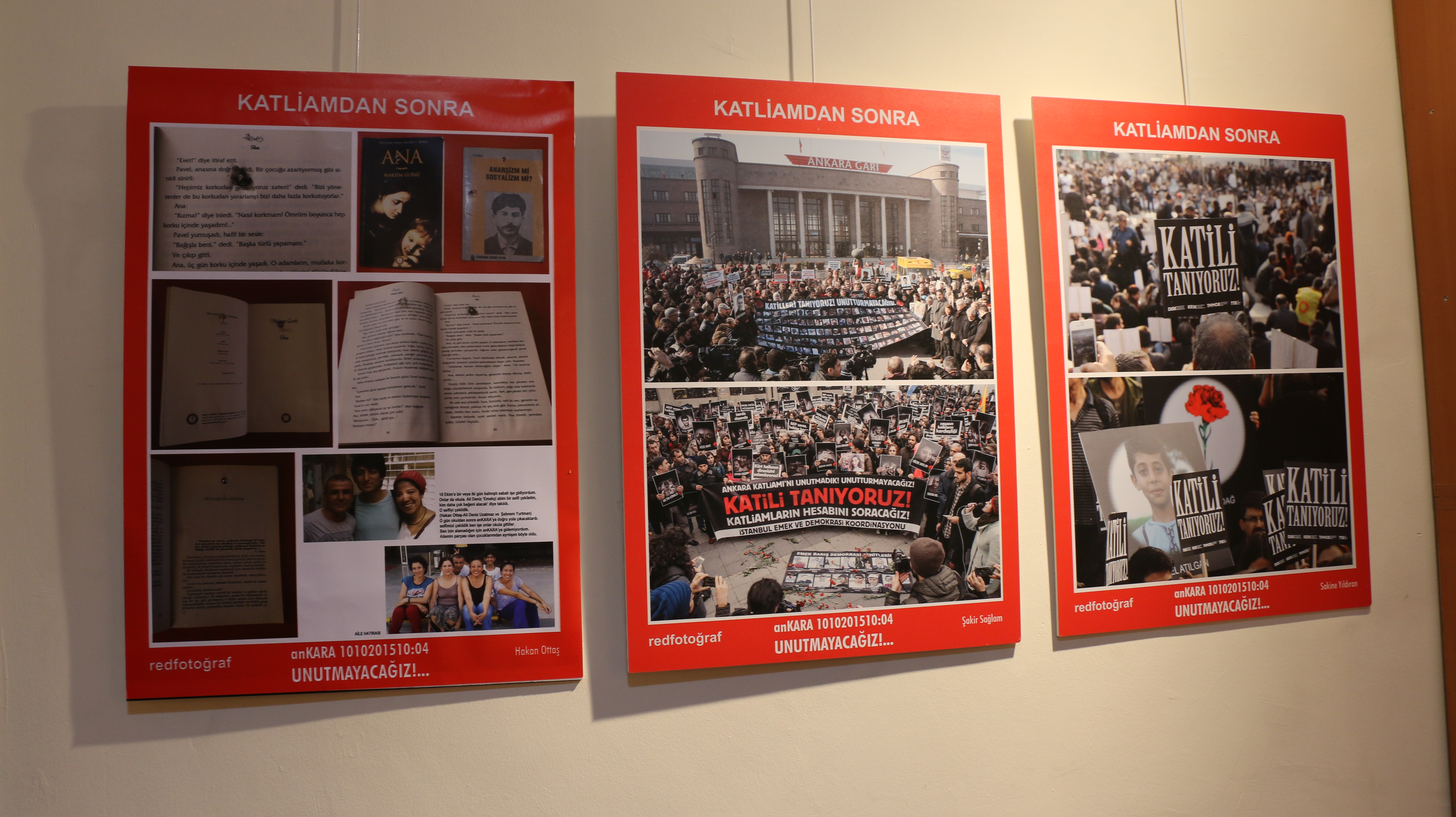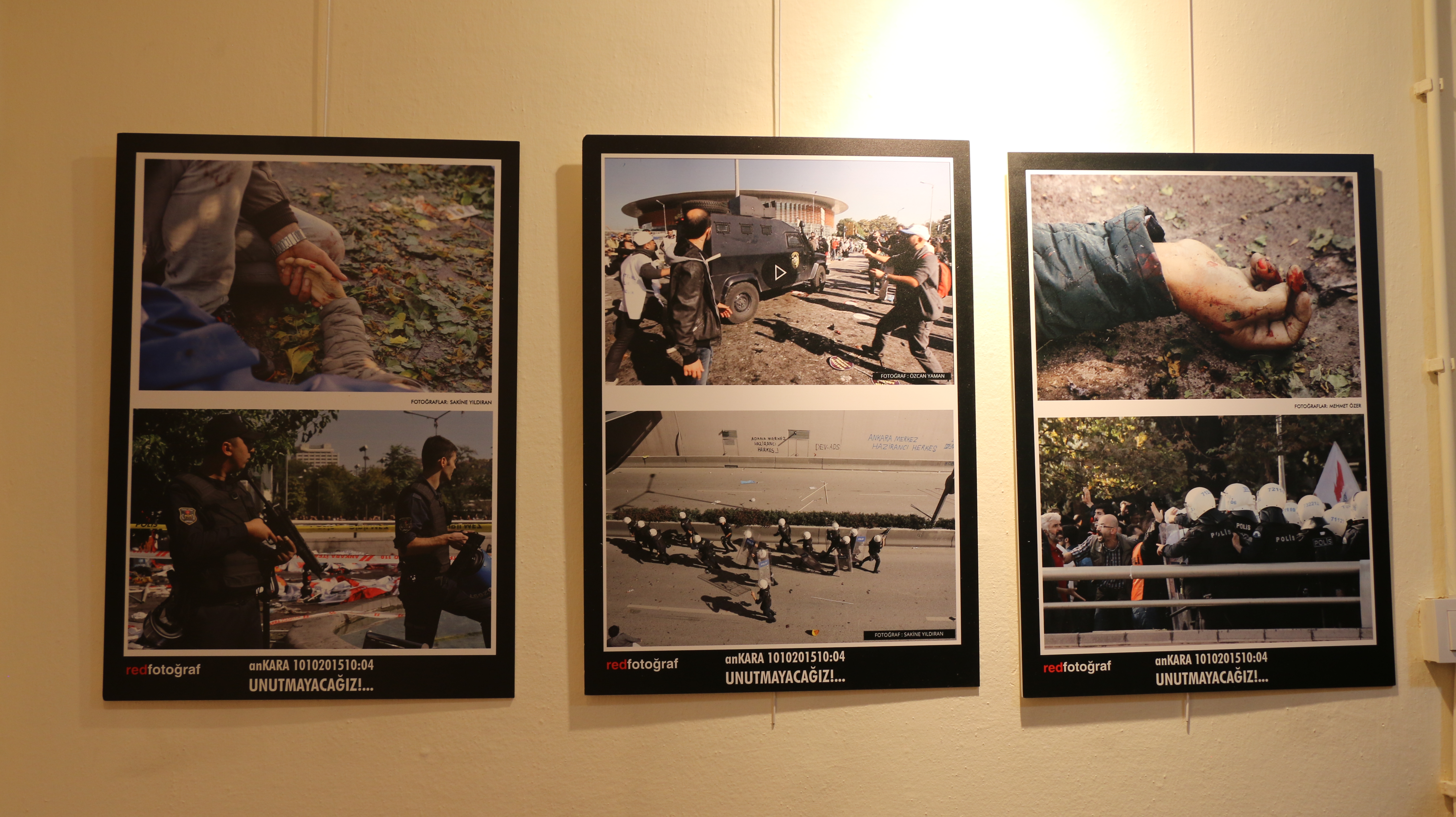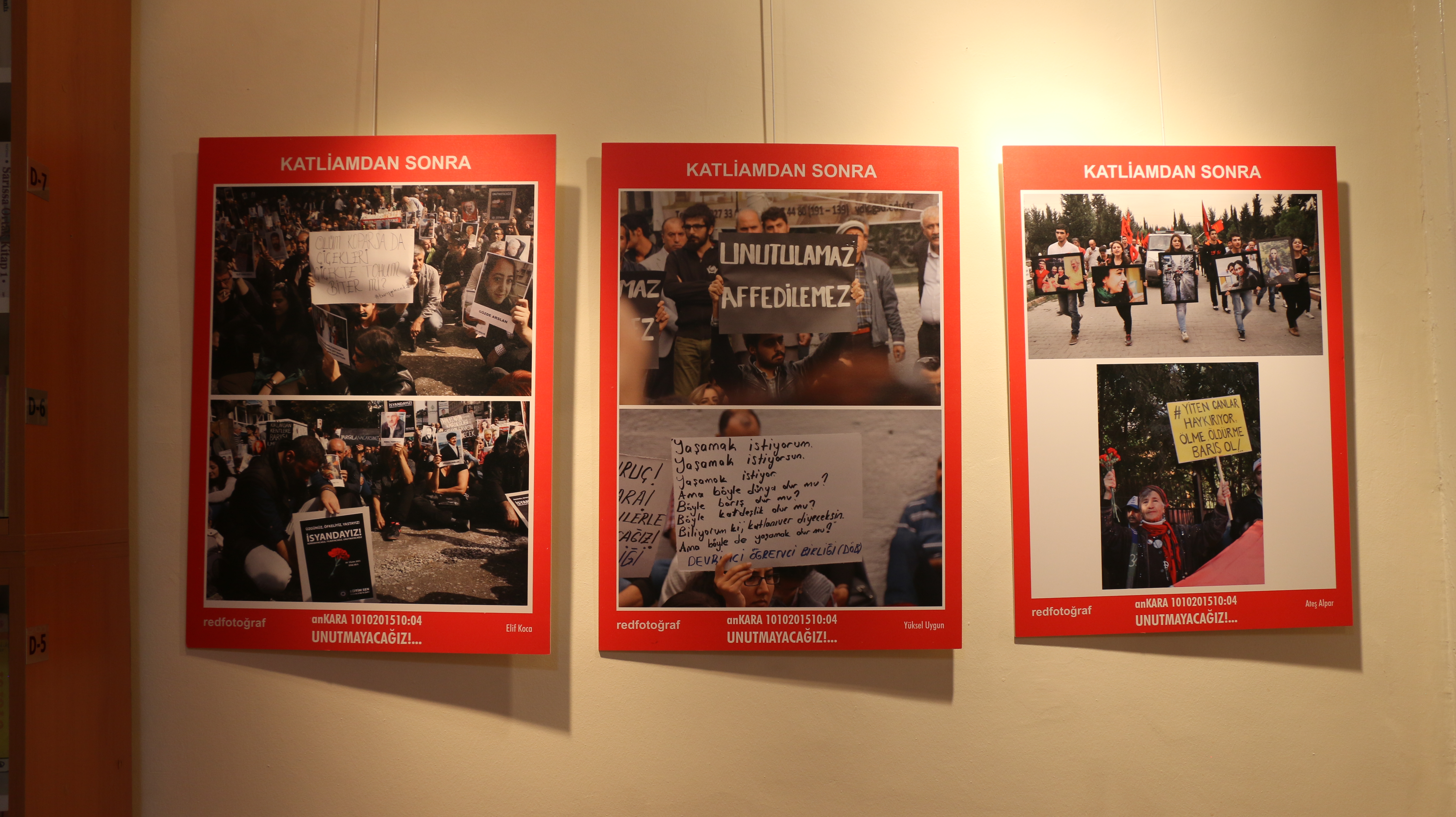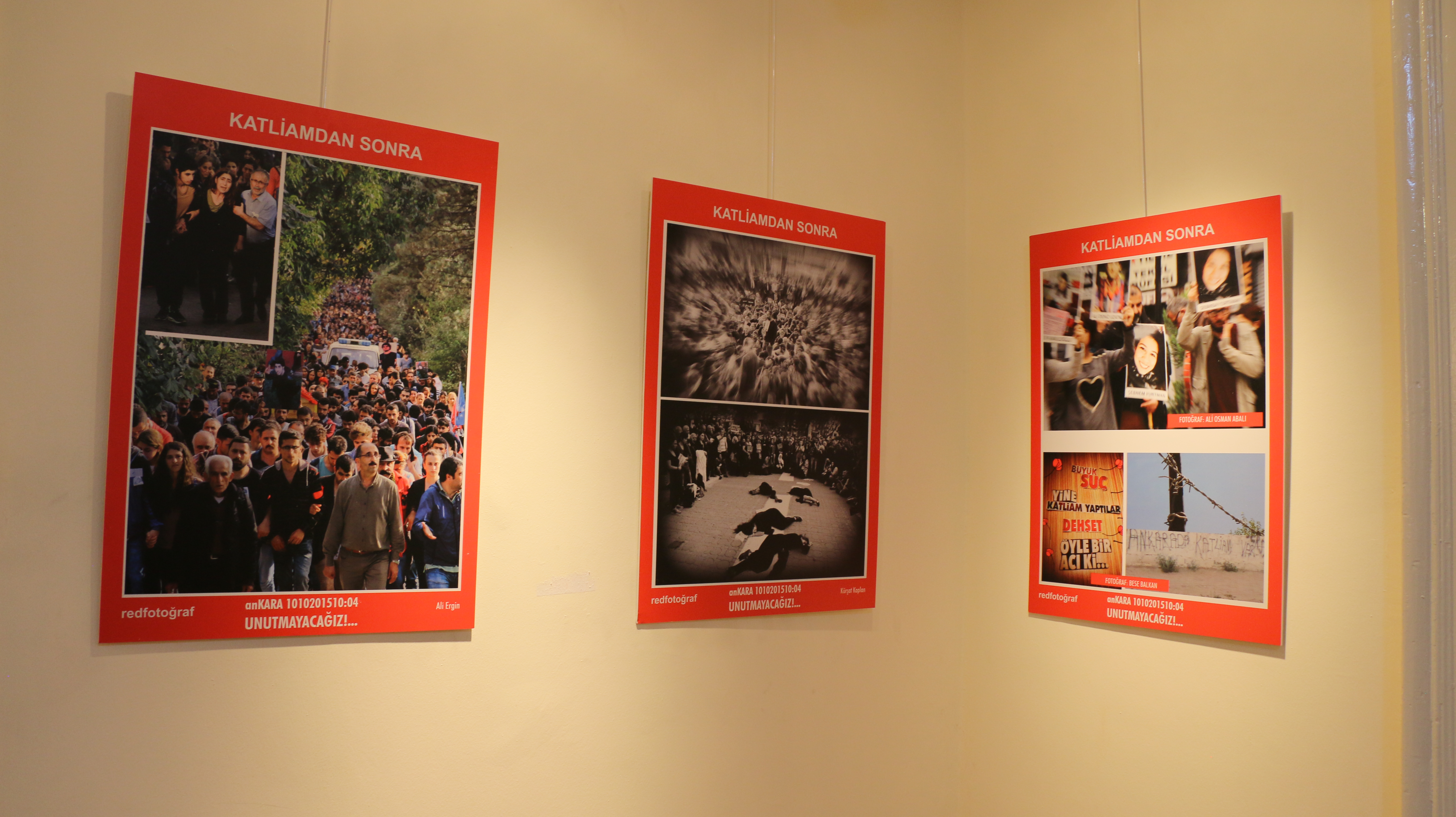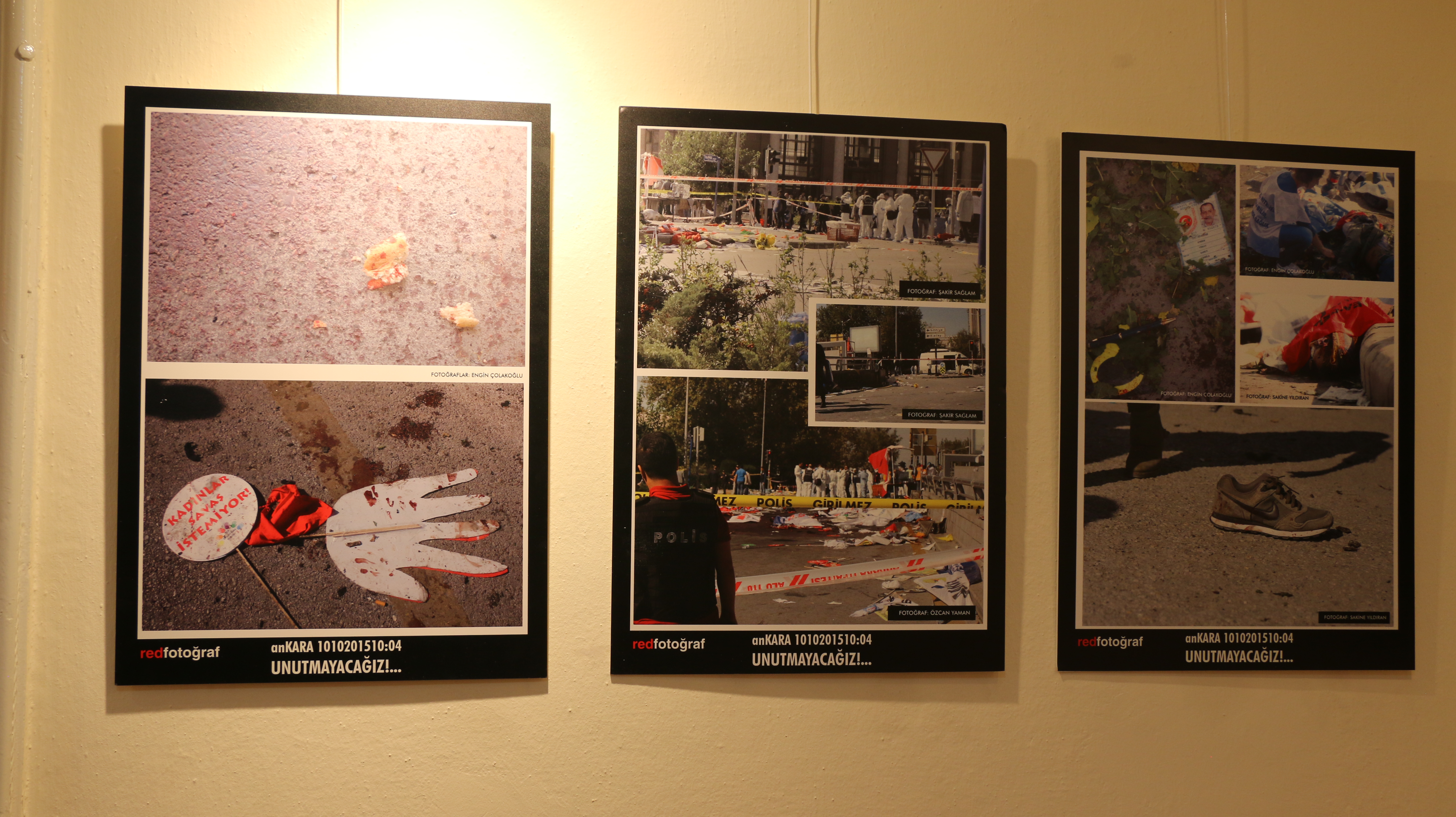 Sergide, Ankara Katliamı öncesi, sonrası, katliamın yıl dönümünde yapılan anmalar ve mahkemelerin yer aldığı fotoğraflar bulunuyor. Geçtiğimiz gün açılan sergide Red Fotoğraf adına konuşan fotoğrafçı Özcan Yaman, amaçlarının bellek oluşturmak olduğunu ve katliamın hafızalardan silinmemesi gerektiğini vurguladı.
