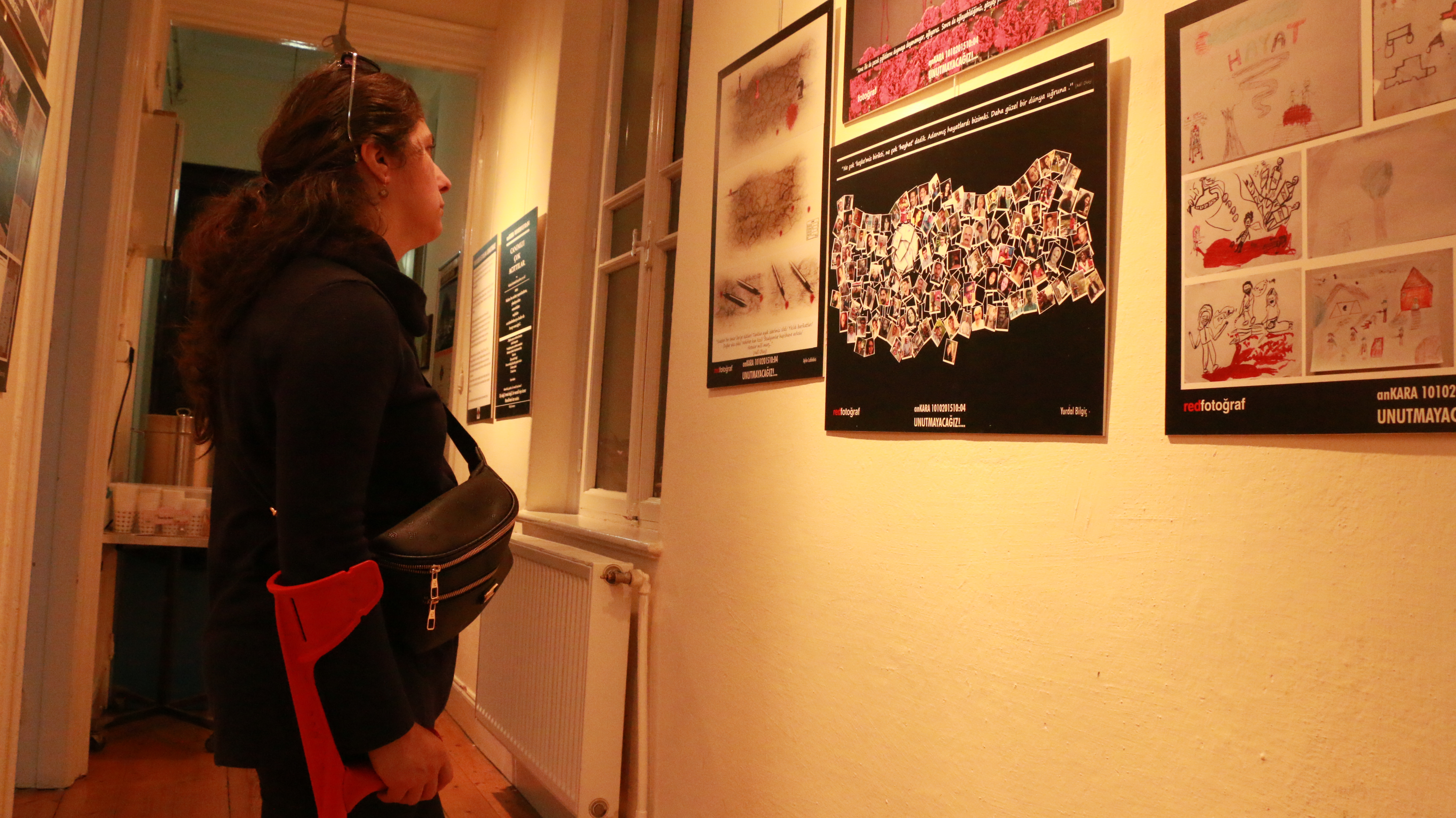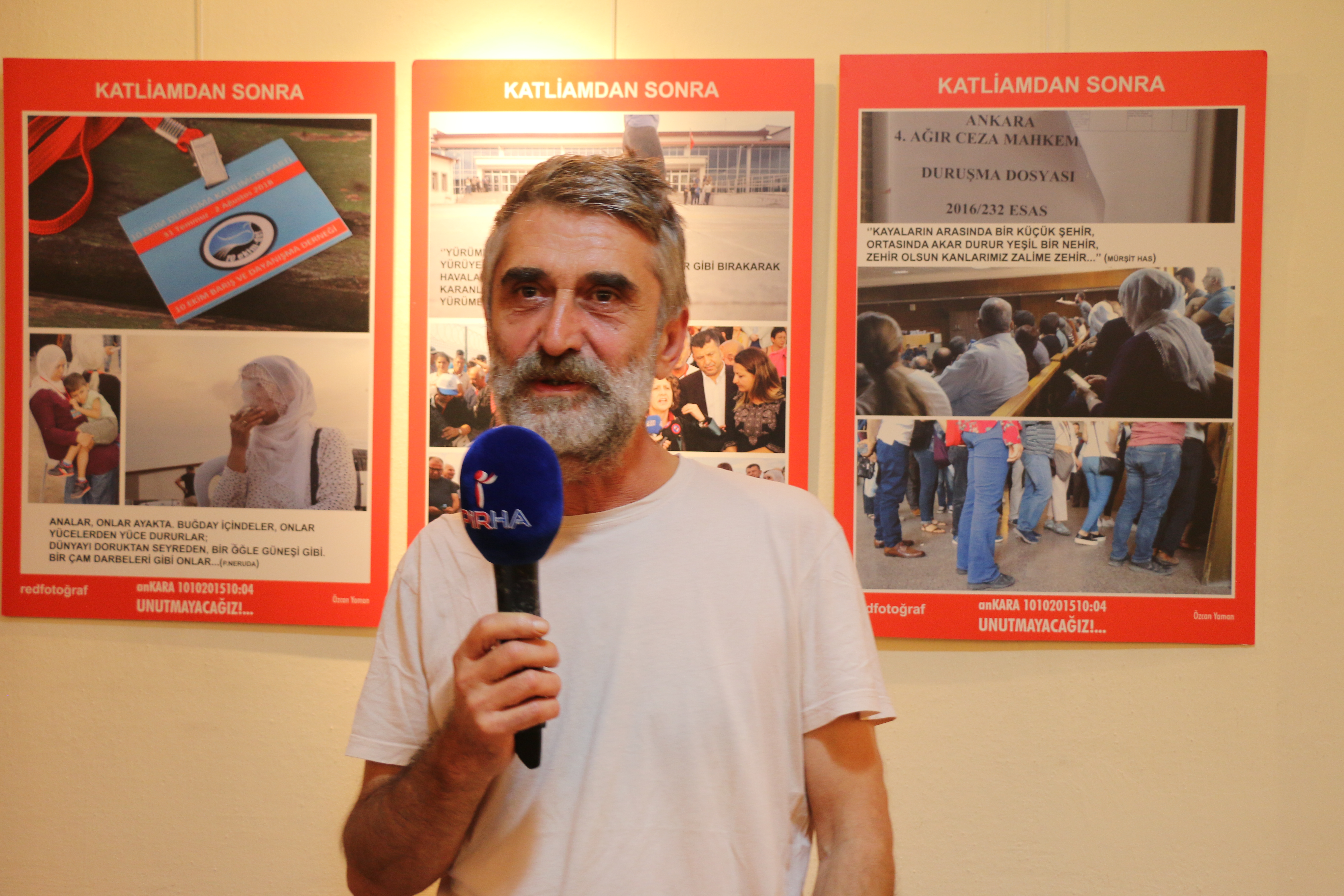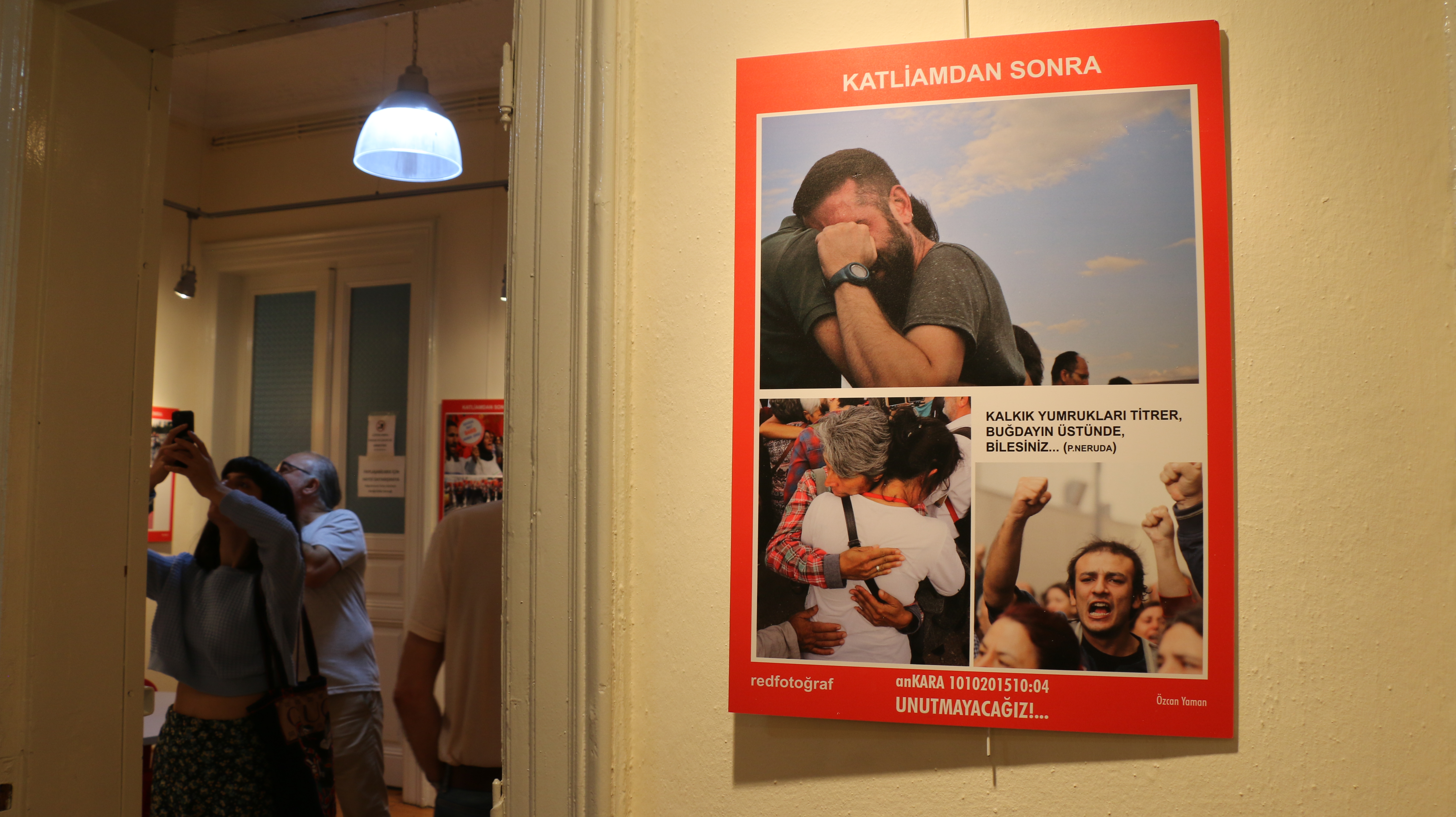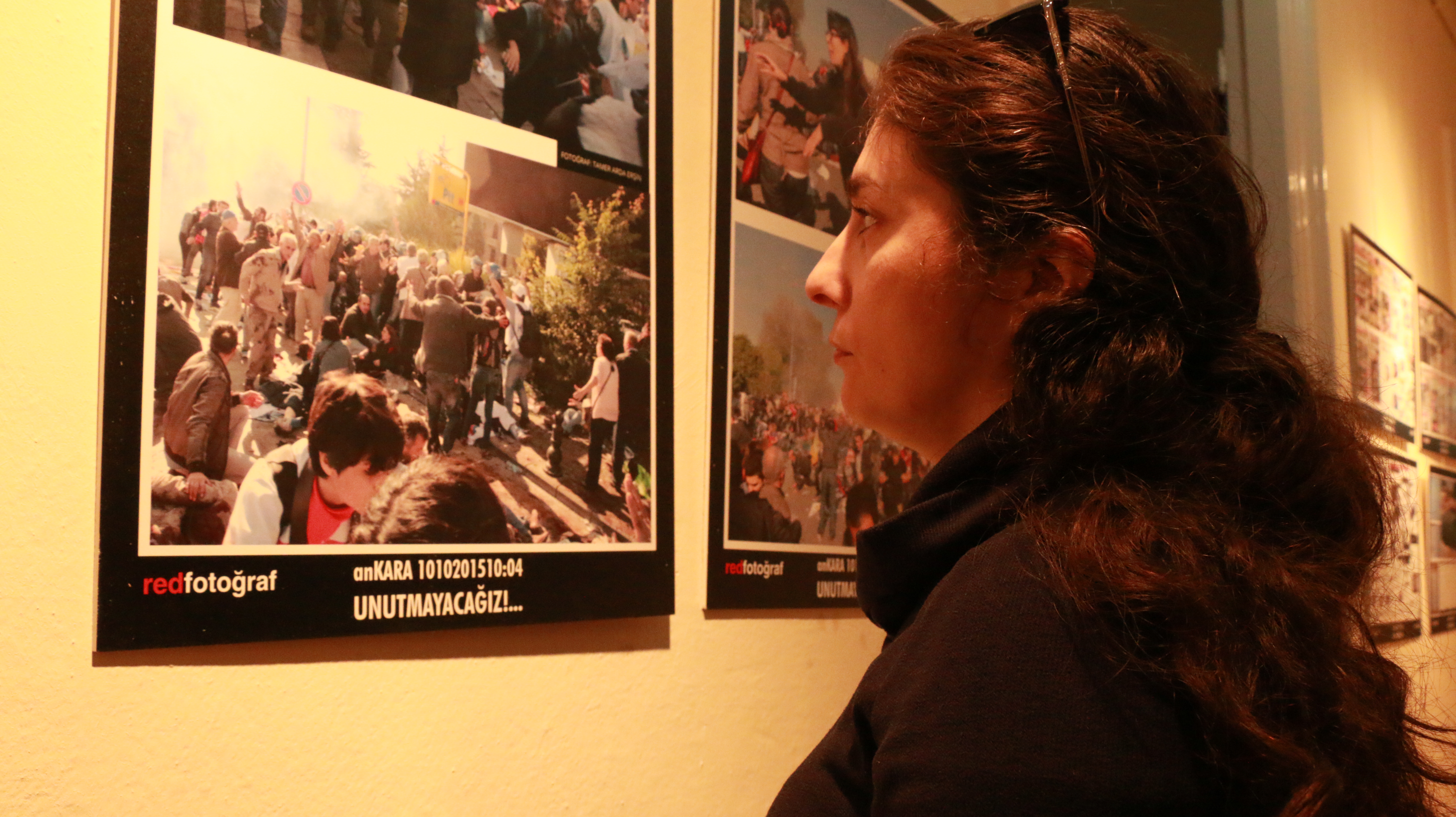 PİRHA-10 Ekim Ankara Katliamı’nda hayatını kaybedenler anısına, Taksim’de bulunan Divriği Kültür Derneği’nde fotoğraf sergisi açıldı. Katliamda yaralanan Ayşegül Duman, sergi için Tekirdağ’dan geldi. Duman, katliamın yaşandığı ilk günden beri yüzleştiğini belirterek “Eğer ayaktaysak şayet asıl sorumluların hesap verdiği günü görmek içindir” diyor.