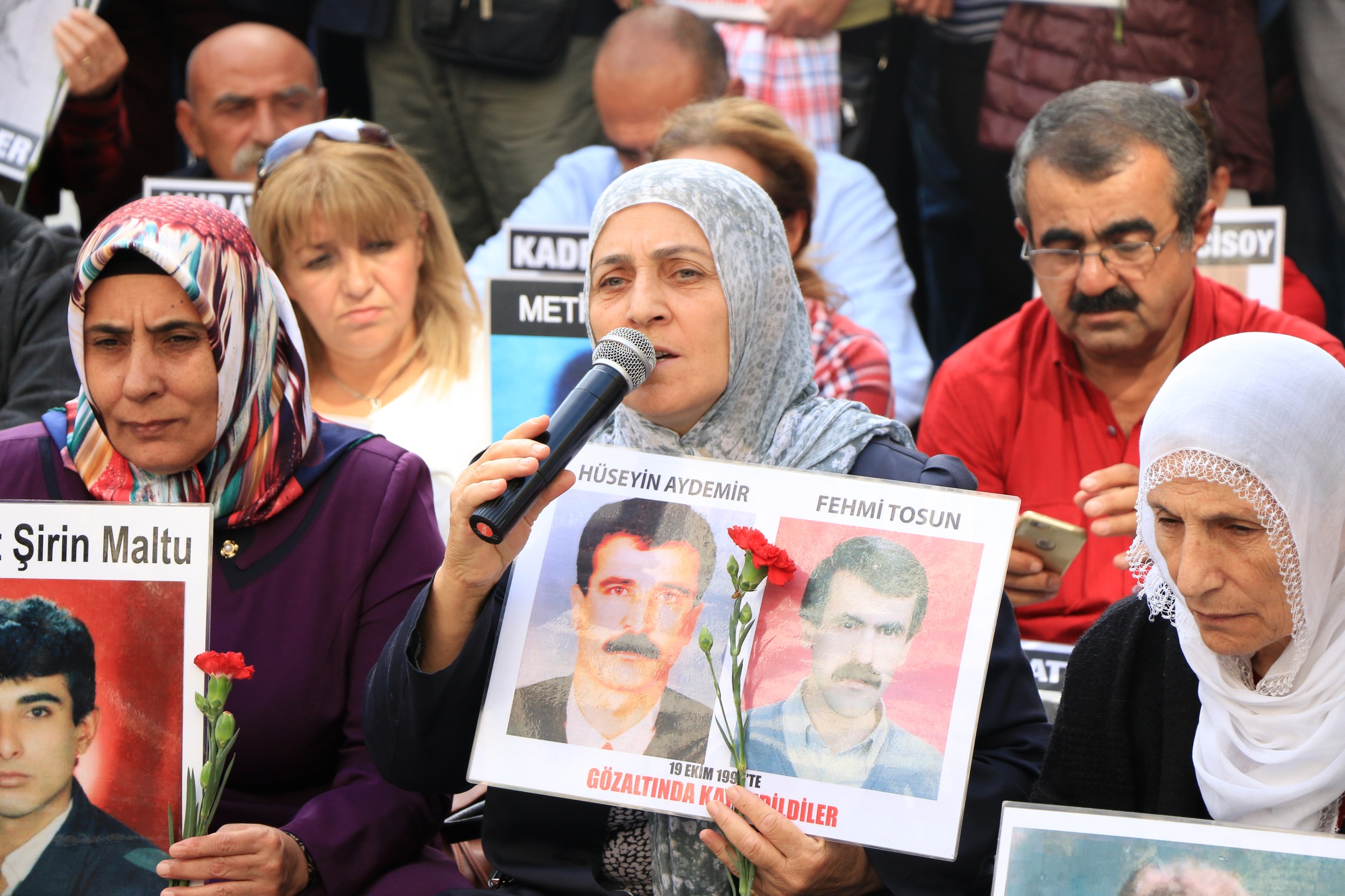 Devletin hem sağır hem kör olduğunu söyleyen gözaltında gözaltında kaybedilen Fehmi Tosun’un eşi Hanım Tosun, biran önce OHAL’in kaldırılması çağrısında bulundu. Tosun, “Hükümetin ‘OHAL’in kime zararı var’ söylemine işaret etti ve ’22 yıldır bu meydanlarda OHAL kaldırılsın, kimse gözaltında kaybedilmesin’ diye mücadele verdik, bu meydanlardan bağırdık. Sizin görmediğinizi ben görüyorum. Yol ortasında insanları çırılçıplak soyuyorlar, bunu görmüyorsunuz. Ben artık kayıp yakını değilim, insan hakları savunucusuyum. Gözaltında kaybedilenlerin faili meçhul değil faili devlettir” dedi.