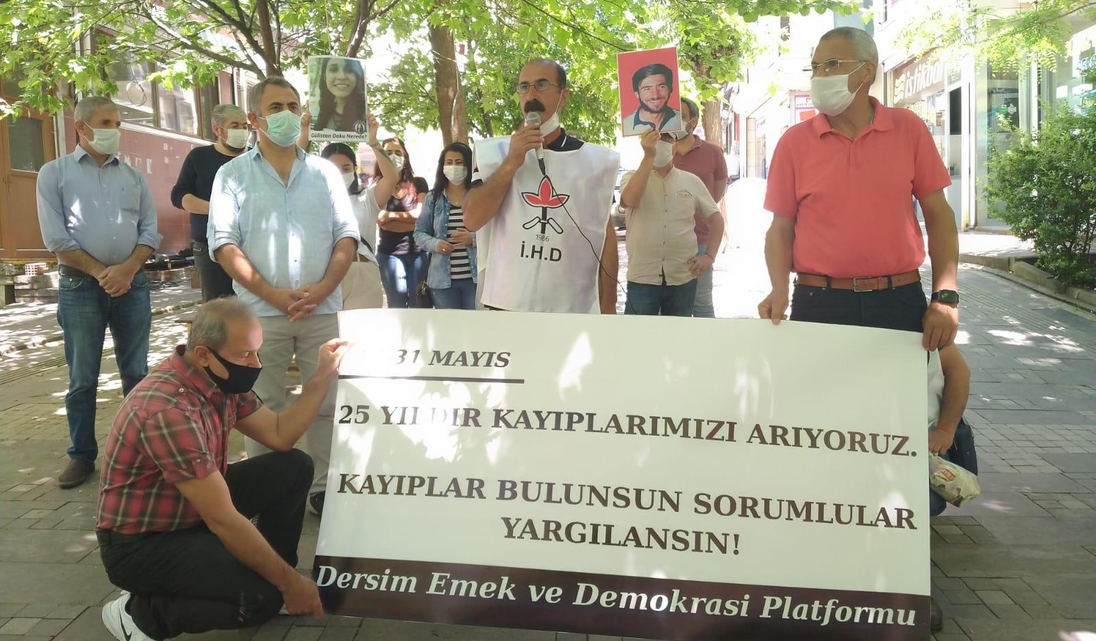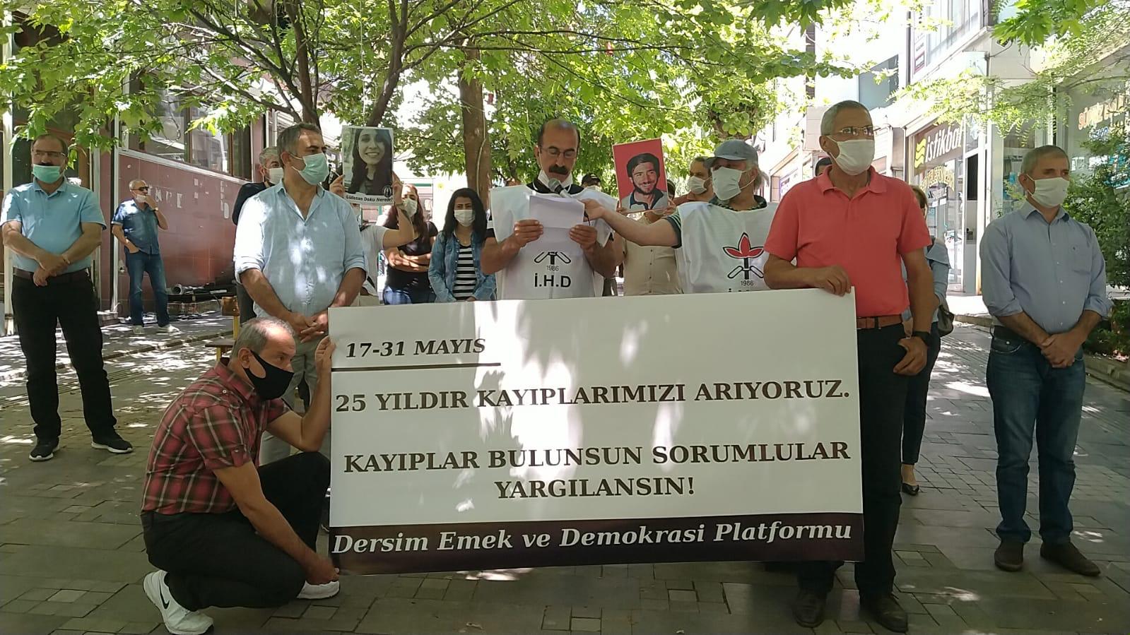 Dersim Emek ve Demokrasi Platformu, 17-31 Mayıs Uluslararası Gözaltında Kayıplara Karşı Mücadele Haftası kapsamında basın açıklaması yaptı. Sanat sokağında yapılan açıklamaya siyasi parti kurum temsilcileri katıldı.
