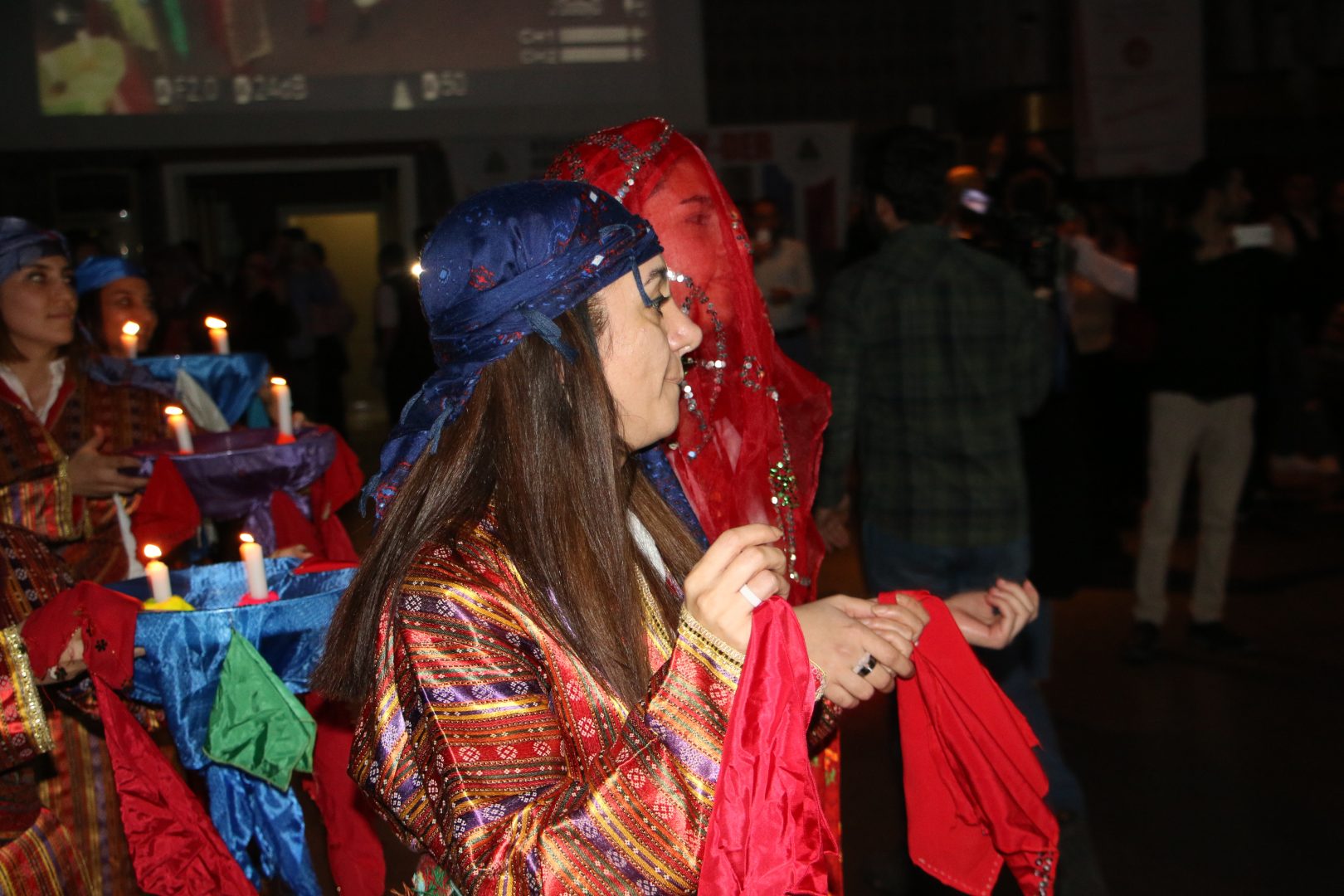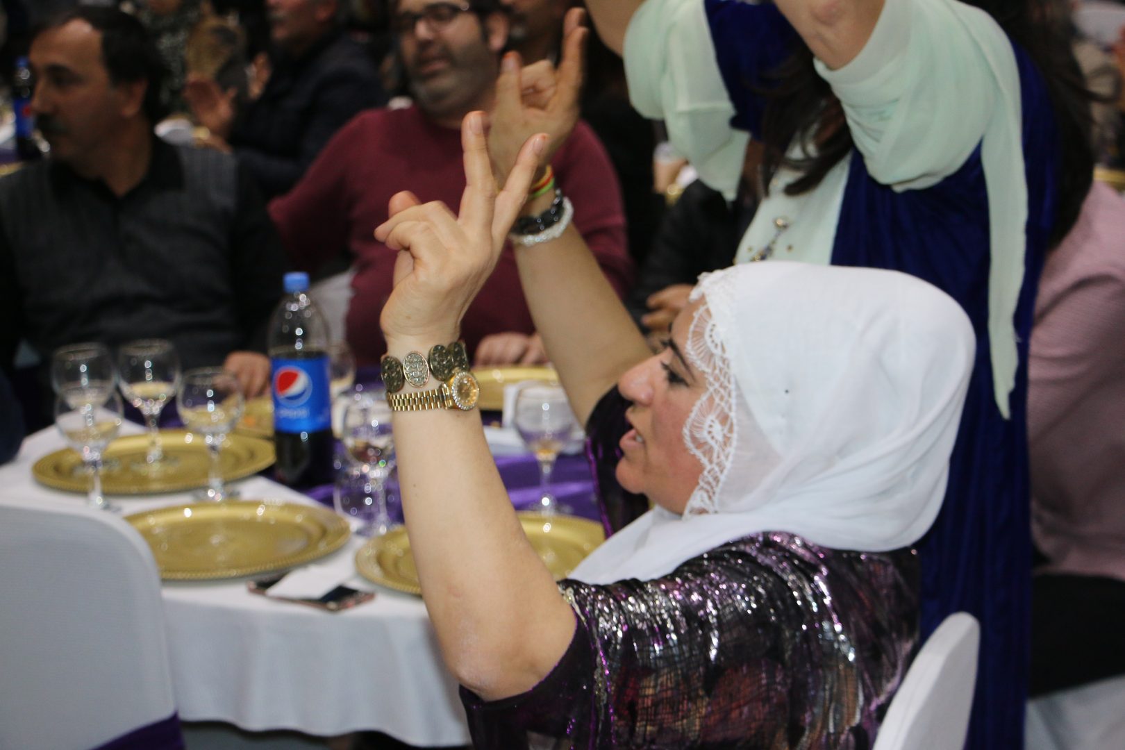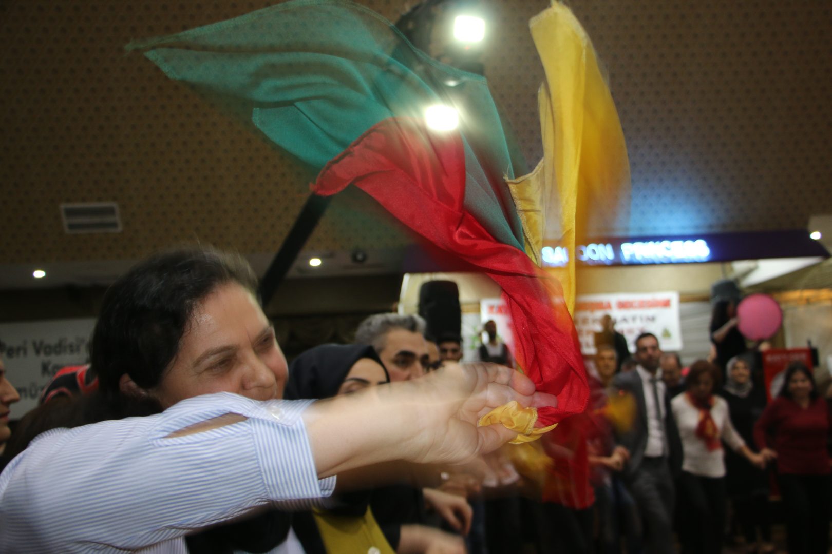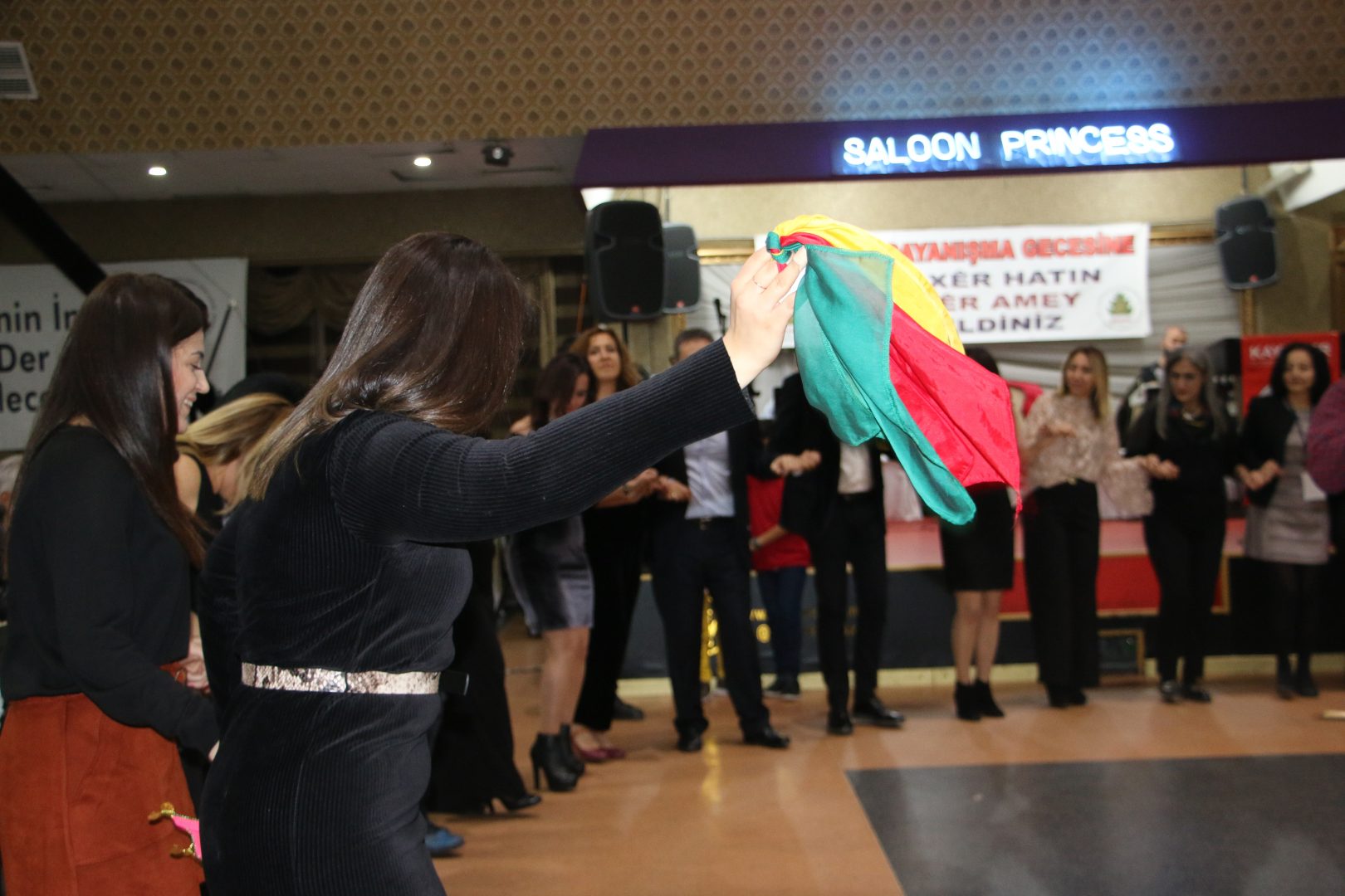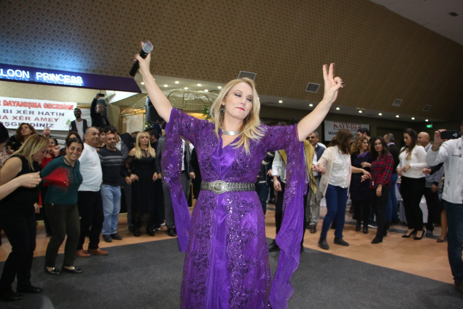 Ardından müzisyen Pınar Aydınlar, Türkçe ve Kürtçe ezgiler seslendirdi. Geceye katılanlar Aydınlar’ın ezgileri eşliğinde halaylar çekti.