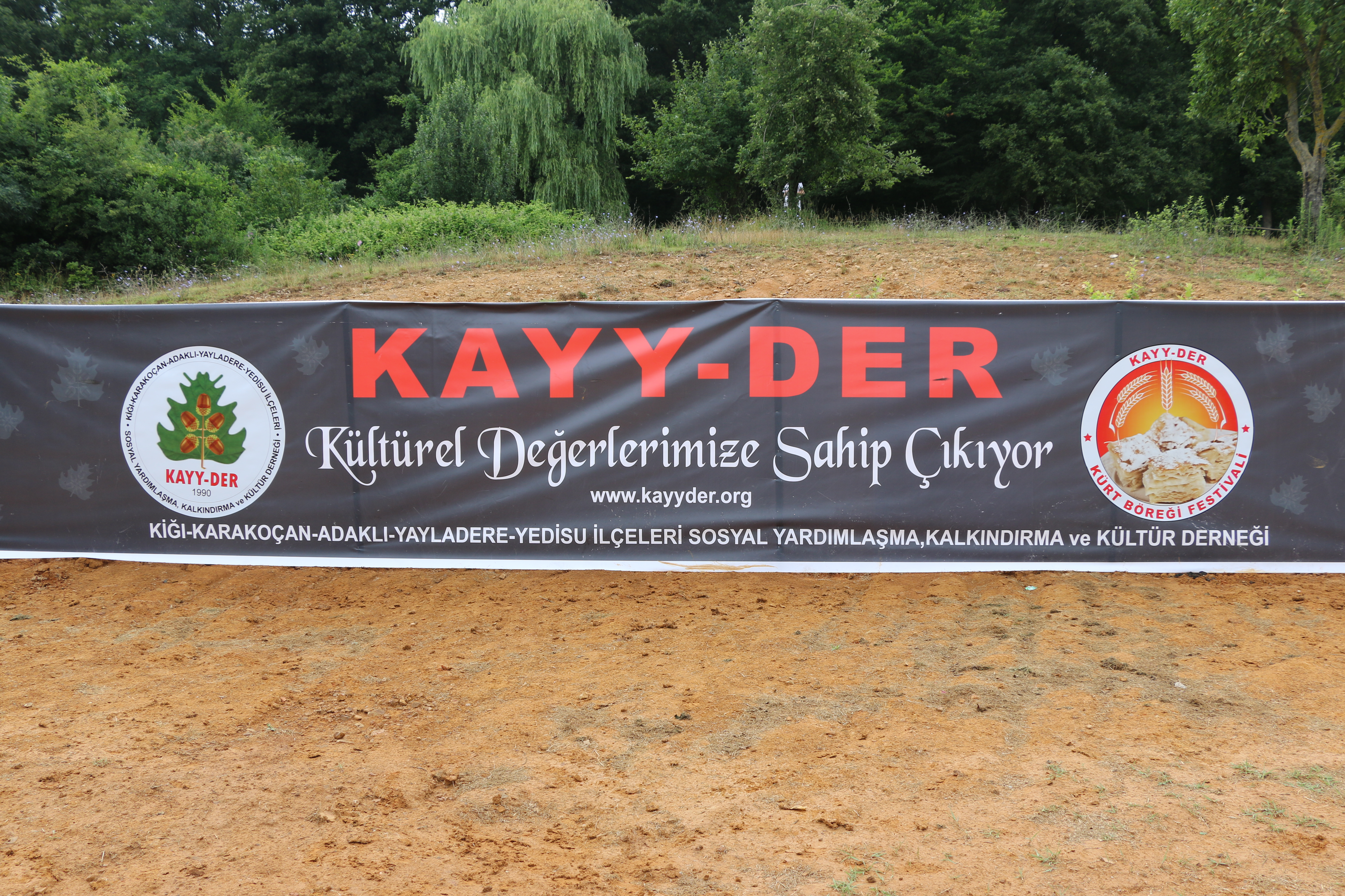 Kiğı, Karakoçan, Adaklı, Yayladere ve Yedisu yani Peri Vadisi etrafındaki ilçeler. Alevi ve Sünni toplumunun bir arada yaşadığı bu ilçelerin oluşturdukları KAYY-DER bir demokratik kitle örgütü gibi çalışıyor. 1990 yılında kurulan KAYY-DER günümüze kadar birçok kültürel sosyal çalışmanın altına imza attı. Bünyesinde birçok sanatçı, eğitimci, müzik ve folklor grubu da çıkaran KAYY-DER’in anadil konusundaki çabası da günümüze kadar devam etti. Uzun uğraşlardan sonra geçtiğimiz günlerde Kürt Böreği’nin isim hakkını yani patentini alarak resmiyete kavuşturdu. Pazar günü gerçekleşen 3. Kürt Böreği Festivali’nde tarihine yakışır renkli karelere tanıklık ettik.