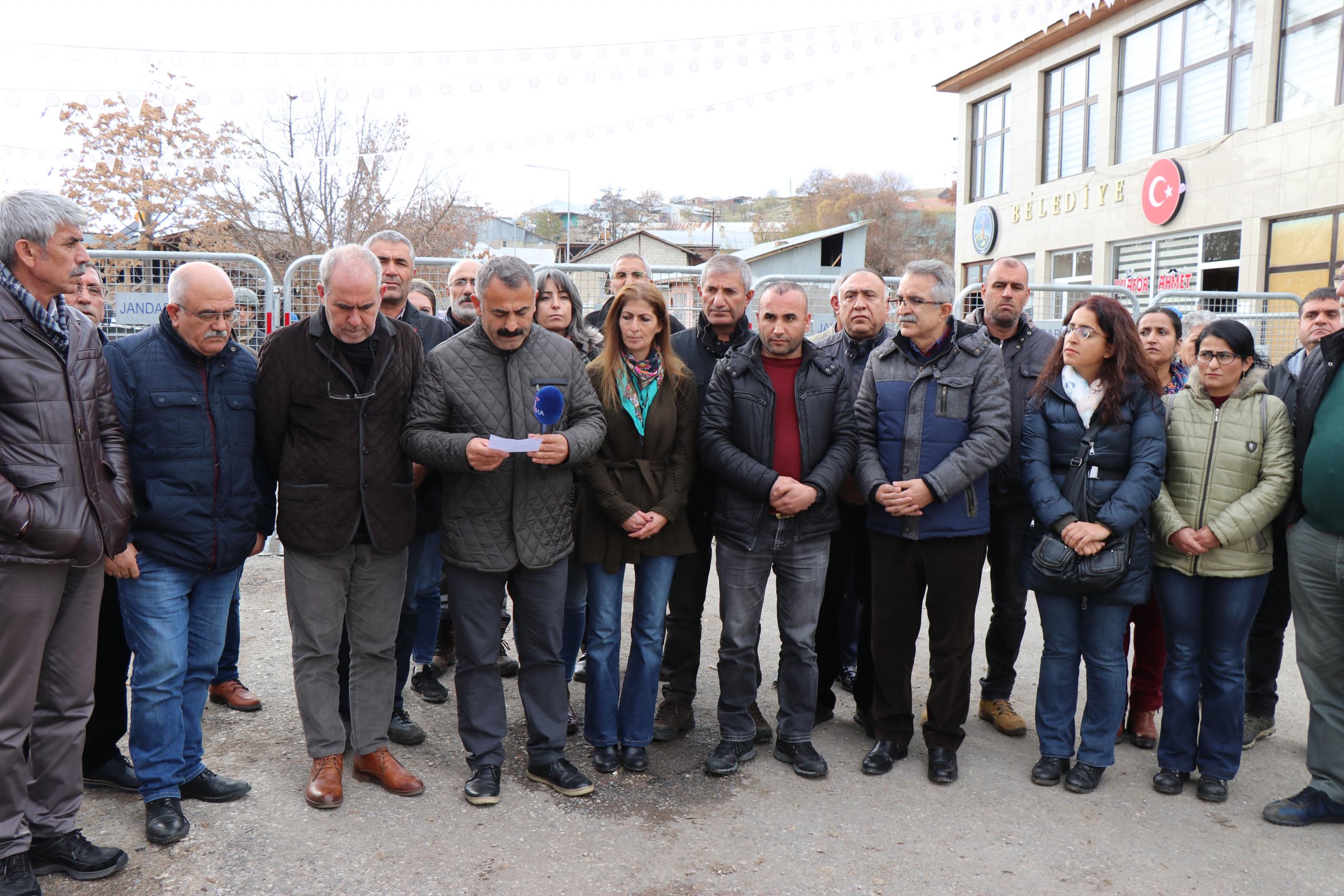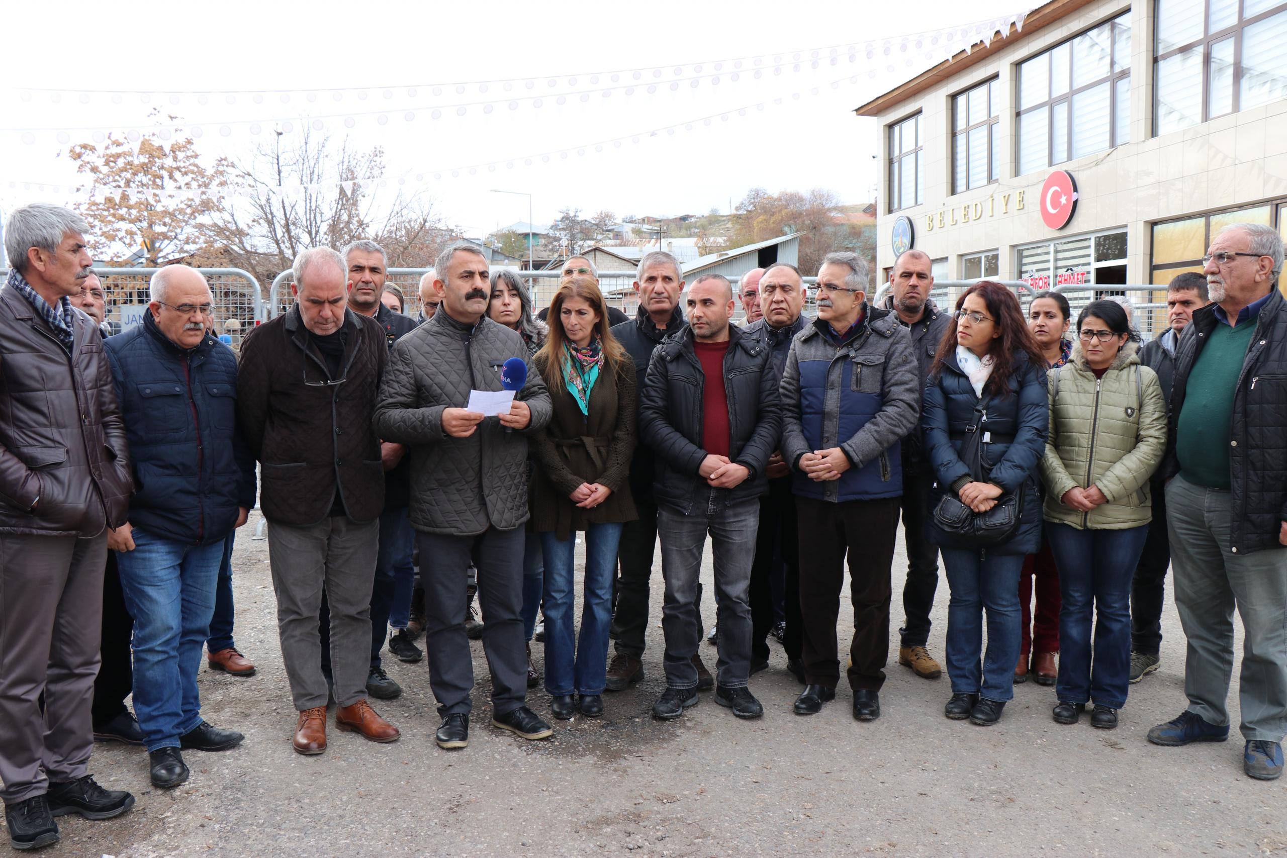 PİRHA- Dersim’de kayyım atanan HDP’li Peri (Akpazar) Belediyesi önünde açıklama yapan kurumlar, hukuk dışı uygulamalar ve hak gasplarının sona ermesi çağrısında bulundu.