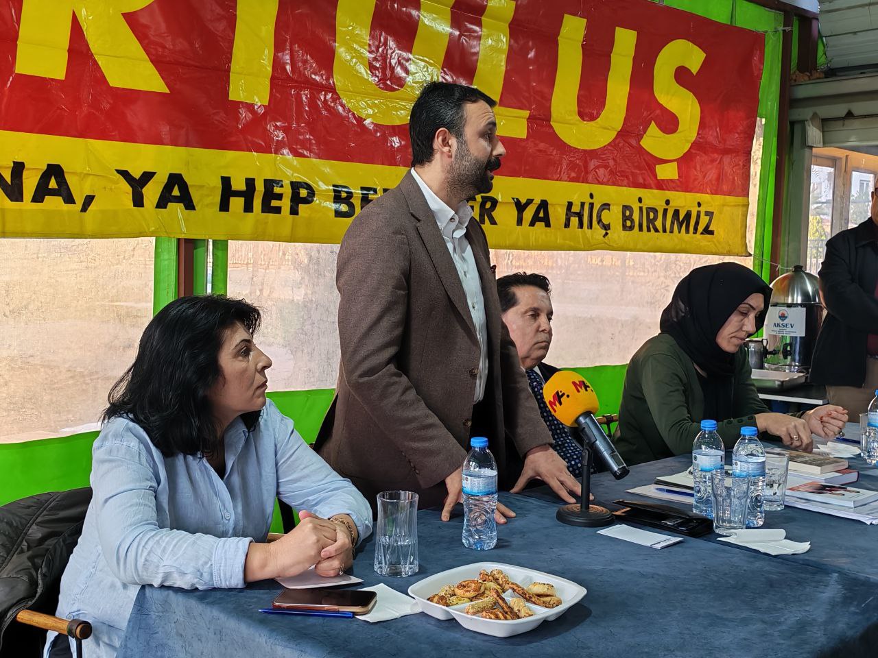 PİRHA- Mersin’de konuşan yerlerine kayyım atanan Esenyurt Belediye Başkanı Ahmet Özer, Akdeniz Belediye Eşbaşkanları Nuriye Aslan ile Hoşyar Sarıyıldız ve Nusaybin Eski Belediye Eşbaşkanı Sara Kaya, kayyım uygulamalarının kaldırılmasını istedi.