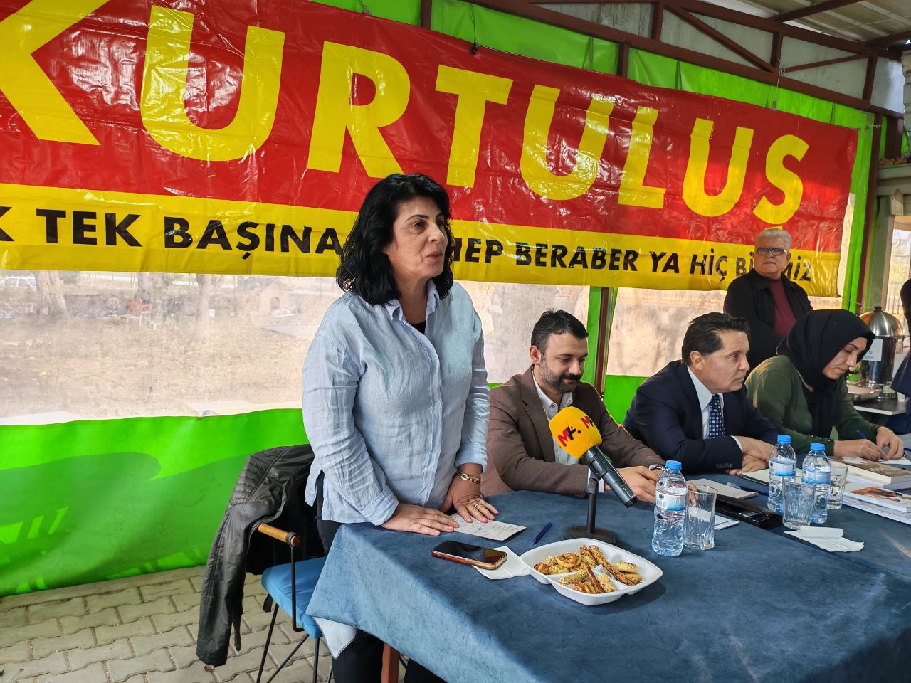 Burada ilk olarak konuşan Nuriye Aslan, DEM Parti’nin 2016’den beri kayyım uygulamasıyla karşı karşıya olduğunu belirterek, “Bizim mücadelemiz bu toplumun vicdanını yaralayan hakların kazanımına yönelik yürüyen antidemokratik uygulamaların bertaraf edilmesi içindir. Fakat hala geri adım atılmıyor. Tüm halkların umudu olan kıymetli bir süreç yürütülüyor ve bununla birlikte kayyım atamaları kısmen durdu. Kayyım atanan belediyelerimizi hala geri vermiş değiller. Bize de haklarımızı geri alana dek omuz omuza mücadele etmek düşüyor” dedi.