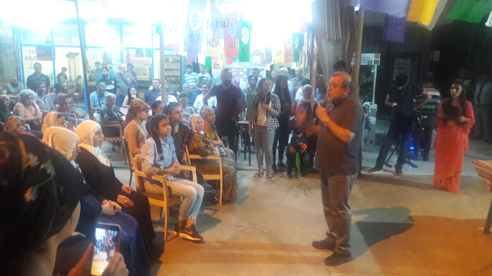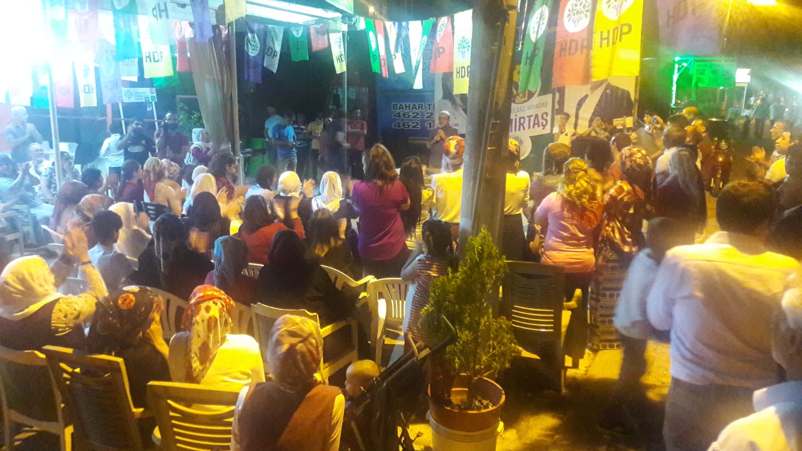 Başarının kadınlarla gerçekleşeceğini ifade eden HDP Antalya milletvekili adayı Kemal Bülbül ” Gecenin bu saatinde buraya gelmek siyasi bir eylemdir.Kadınların ve gençlerin bu saate burada olmasını çok anlamlı buluyorum. Bu birliktelik ve çalışmalar bizi başarıya götürecektir. HDP’li siyasetçilerin tutukluluk durumuna da vurgu yapan Bülbül, cezaevlerinde tutsak alınan Selahattin Demirtaş, Figen Yüksekdağ, belediye başkanlarımız ve siyasiler bir an önce serbest bırakılmalıdır” dedi.