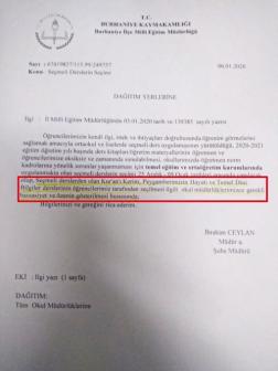 HDP İstanbul Milletvekili Ali Kenanoğlu, Balıkesir’in Burhaniye ilçesinde kaymakamlık tarafından okul müdürlerine gönderilen, din derslerine ilişkin bir yazıyı paylaştı.