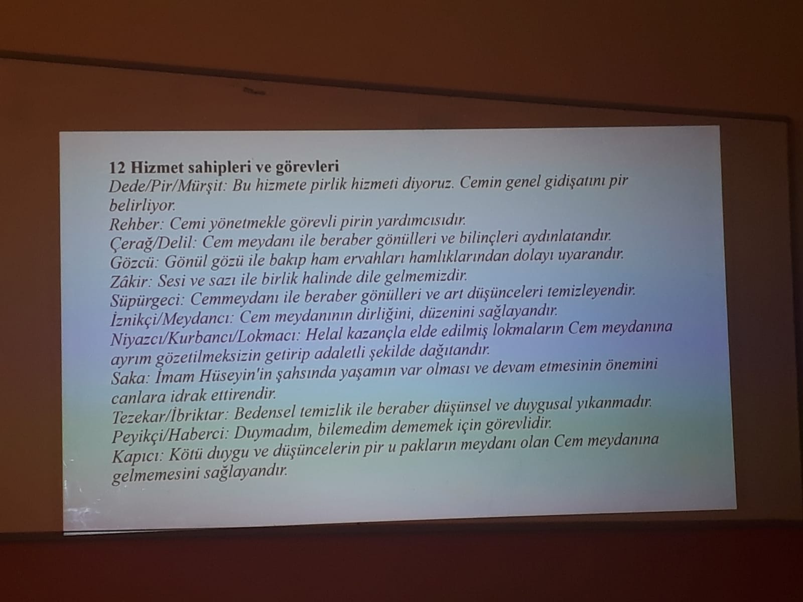 Pir Sultan Abdal Kültür Derneği (PSAKD) Kadıköy Şubesi İçerenköy Cemevi’nde ikincisi düzenlenen Alevilik eğitim seminerinin ilk sunumu Alevilik üzerine çalışmalarıyla tanınan Naz Atmaca tarafından verildi.