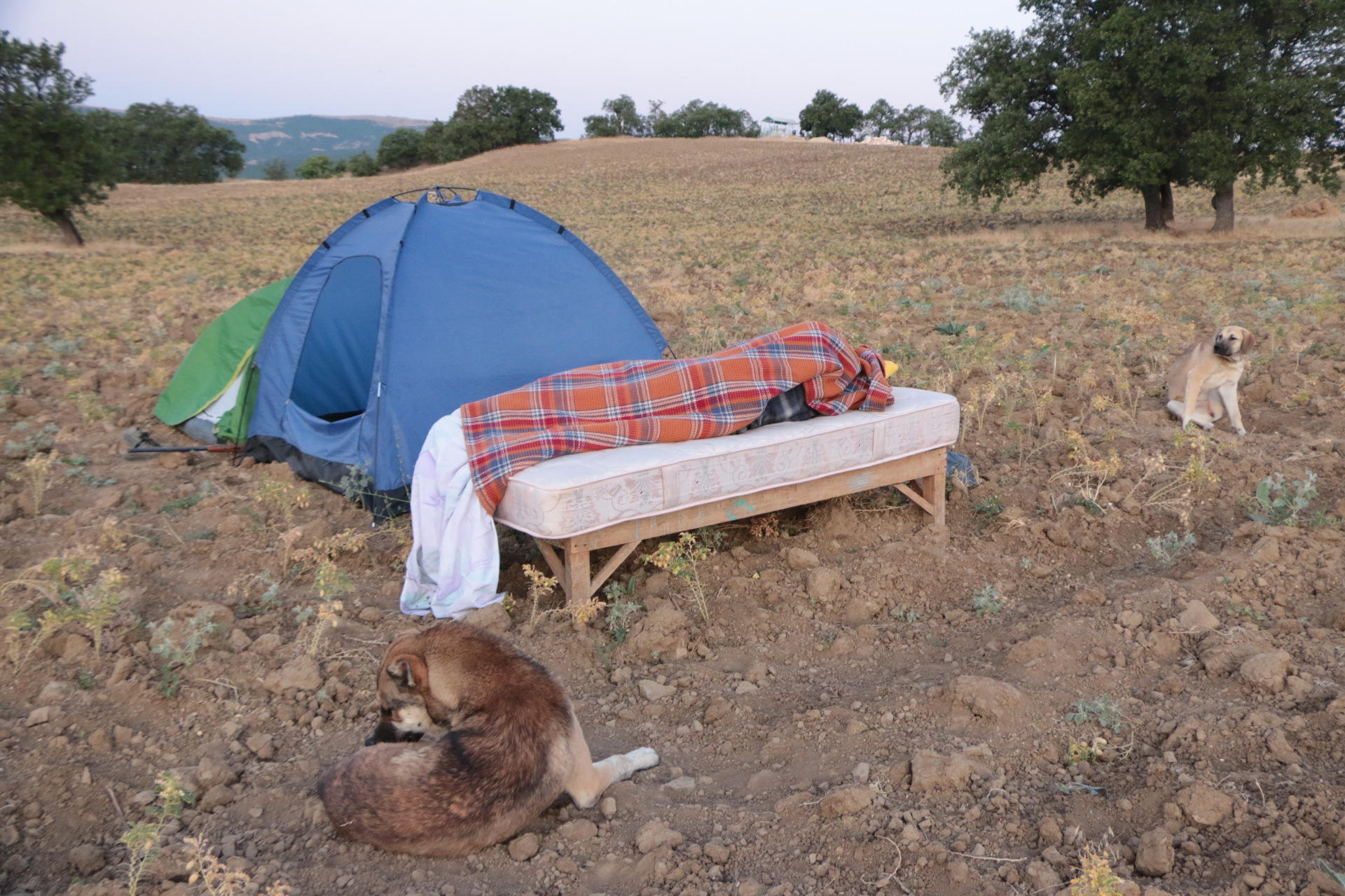 10 Mayıs’ta ektikleri hasat zamanı ise geldi. Dargın, “Yaklaşık bir aydır geceli gündüzlü nöbet tutuyoruz. Çevre köylerden inekleri bırakıyorlar, tarlalara geliyor. Gündüzleri onları bırakmamaya çalışıyoruz. Geceleri de ormanın içinde olduğunda kaynaklı domuz çok, ayı var. Gece de onları bekliyoruz. Domuzları öldürmüyoruz çünkü onlar bizim dostlarımız. Havaya ateş ediyoruz. İki köpeğimiz var, domuzlara karşı onlar bizi uyarıyor. Tarlaya sokmamaya çalışıyoruz domuzları ama arazi büyük. Bazen engel olamıyoruz.” diye yaşadığı zorlukları anlatıyor.