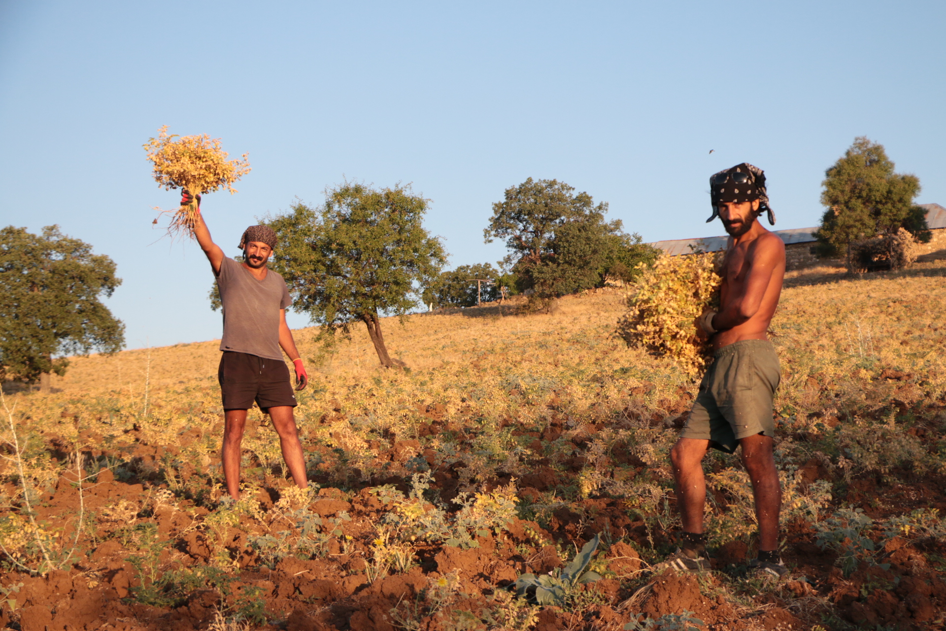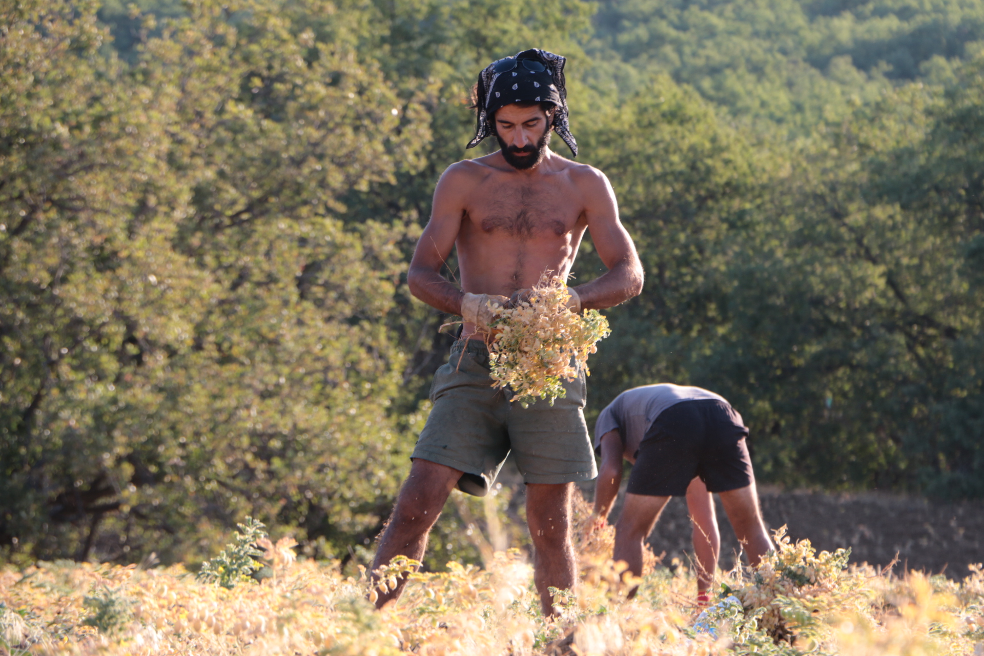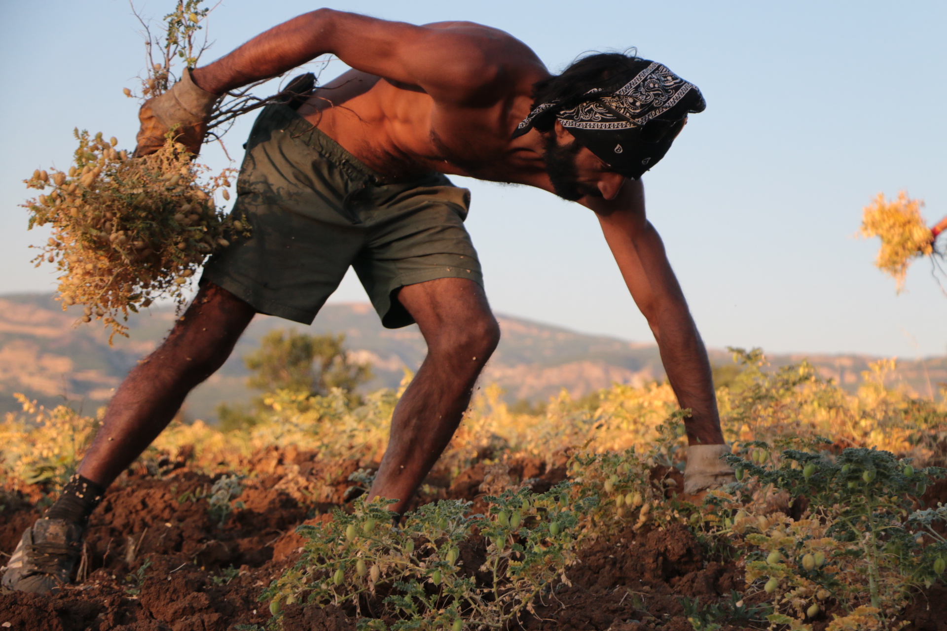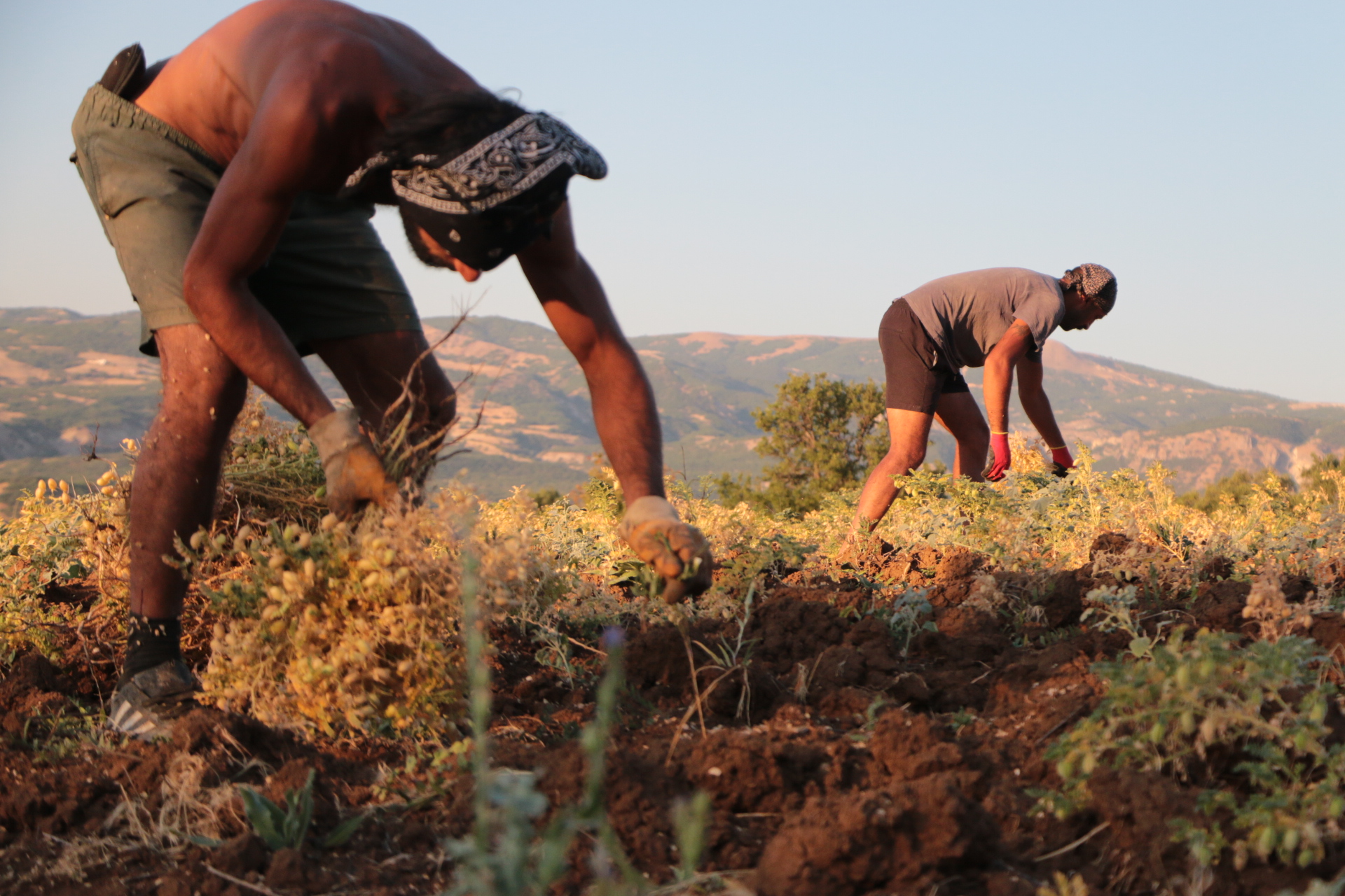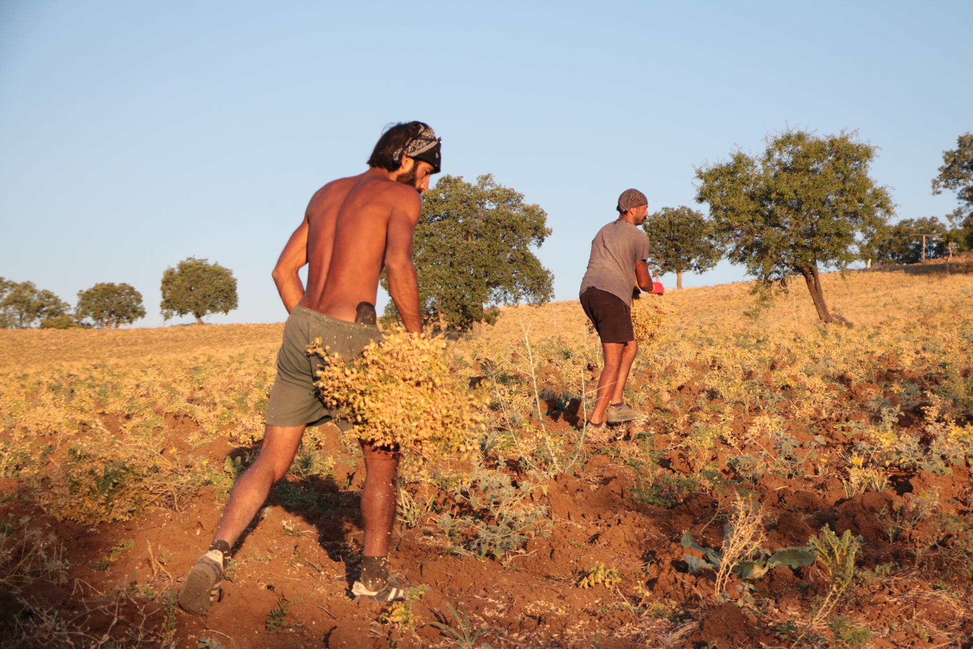 Kurdukları iki çadır ve meşe ağaçlarından yaptıkları barakada konaklama ihtiyaçlarını sağlayan bu iki genç sabahın beşinde işe koyuluyor. Ekildikten 2 ay sonra hasat veren nohutları bir haftadan fazladır toplamaya çalışan gençler öğlen saatine kadar hiç durmadan çalışıyor. Sıcağın en yakıcı olduğu öğlen saatlerinde yemek ihtiyaçlarını karşılayıp dinleniyorlar. Ardından da yeniden 4’den sonra başladıkları nohut toplama işleri hava kararana kadar devam ediyor. Akşam her gün domuz ve ayı nöbeti tutarken, ateşin başında iki köpeği ile birlikte toprakla uyumlu bir şekilde yaşamlarını sürdüren gençlerin hayatlarındaki ilk deneyimleri bu.