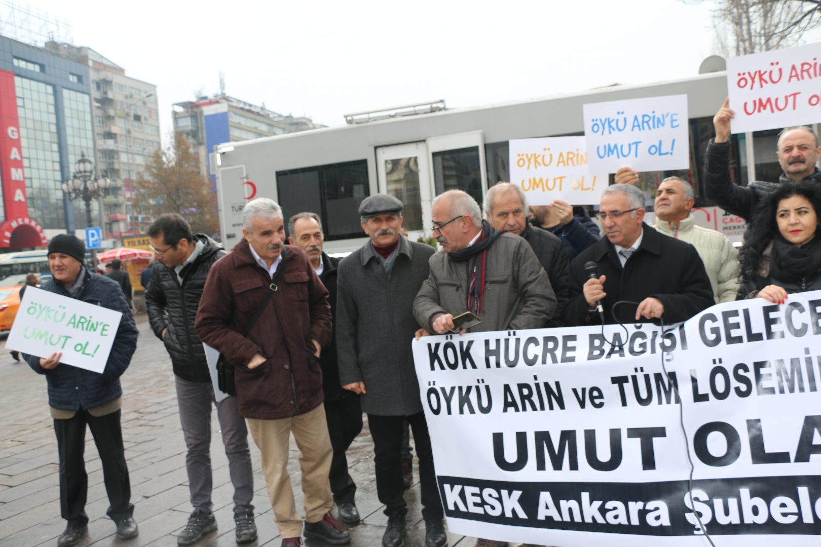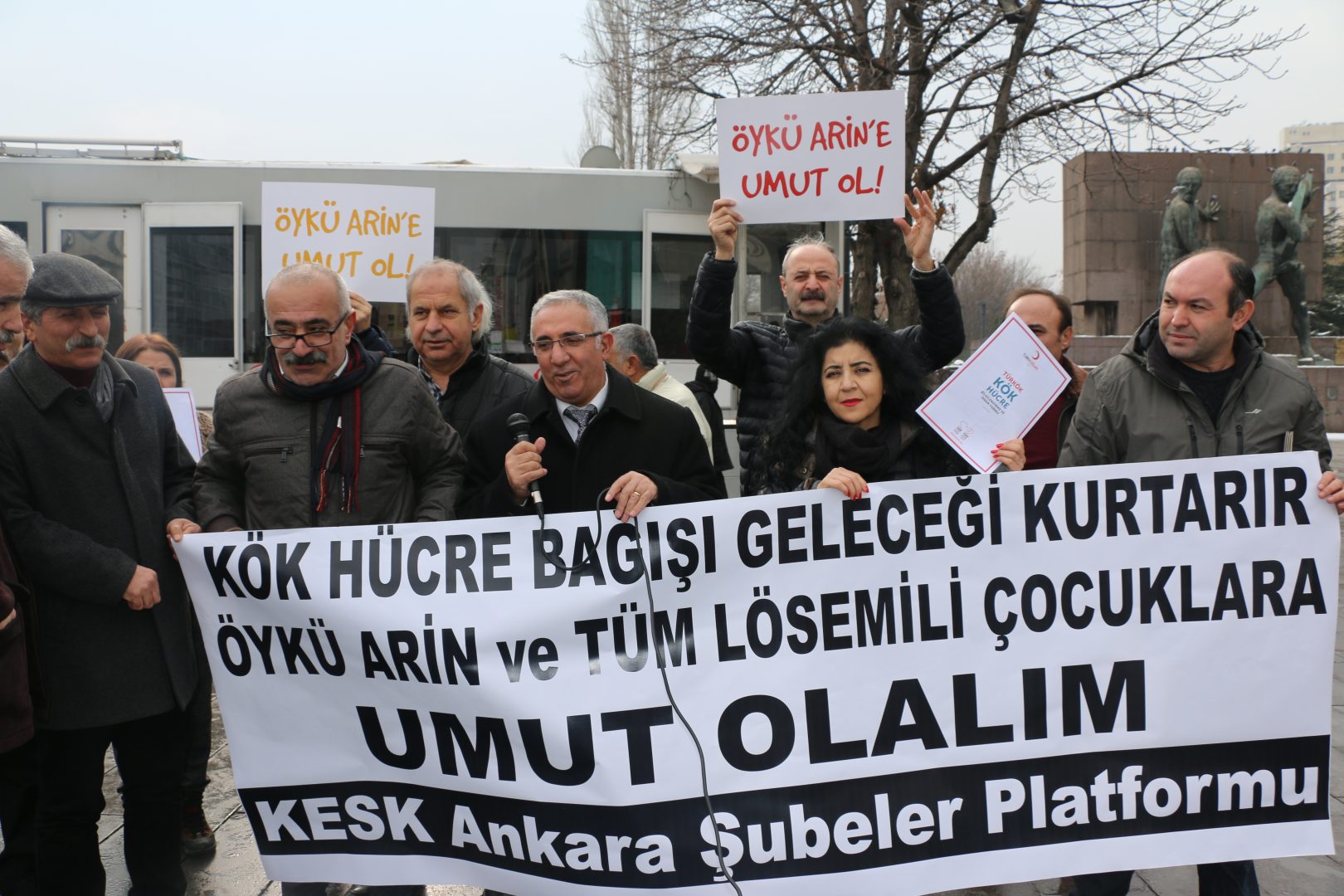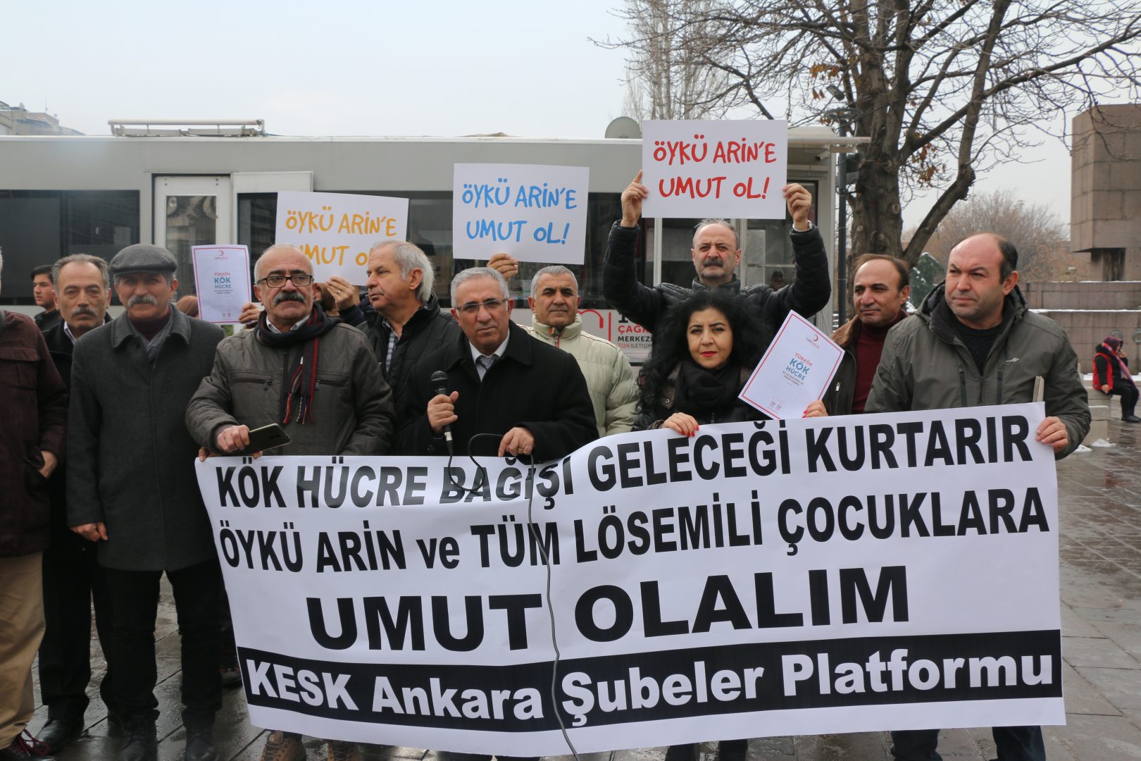 KESK Ankara Şubeler Platformu üyeleri bugün Ankara Kızılay Güven Park’da yaptıkları basın açıklamasıyla Öykü Arin Yazıcı için kan bağışı çağrısında bulundu.