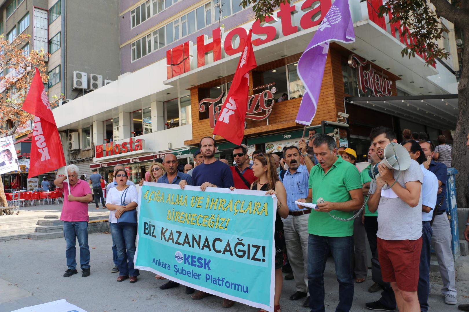 18 Eylül Pazartesi günü yeni eğitim öğretim yılı başladığını hatırlatan KESK Ankara Şubeler Platformu, “Darbe girişimi sonrasında çıkarılan OHAL KHK’leri ile Milli Eğitim Bakanlığı (MEB) bünyesinde çalışan 34 bin eğitim emekçisi, 5 bin 295 bilim emekçisi ve 1194 idari personel tamamen siyasi kararlar ve tasarruflarla, ne ile suçlandıklarını bile bilmeden ve savunma hakkı bile tanınmadan kamu görevinden ihraç edilmiştir” dedi.