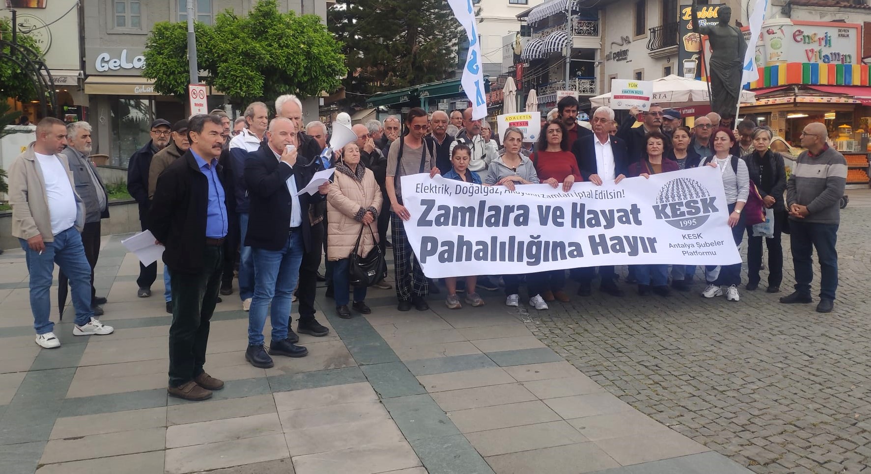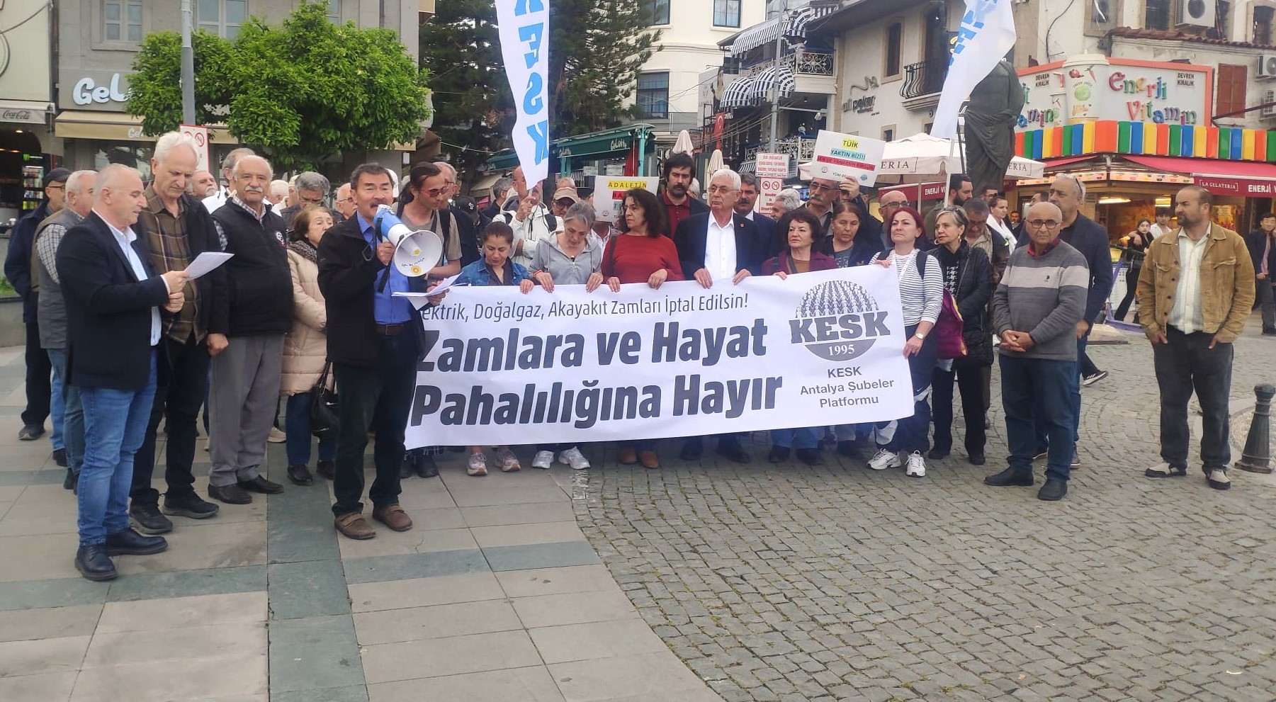 PİRHA-Antalya’da KESK Şubeler Platformu’nun Attalos Anıtı önünde yaptığı açıklamada, Enerji fiyatlarında oluşan tırmanışın maliyeti emekçi sınıfların sırtına yüklenmek isteniyor” denilerek zam politikalarına tepki gösterildi.