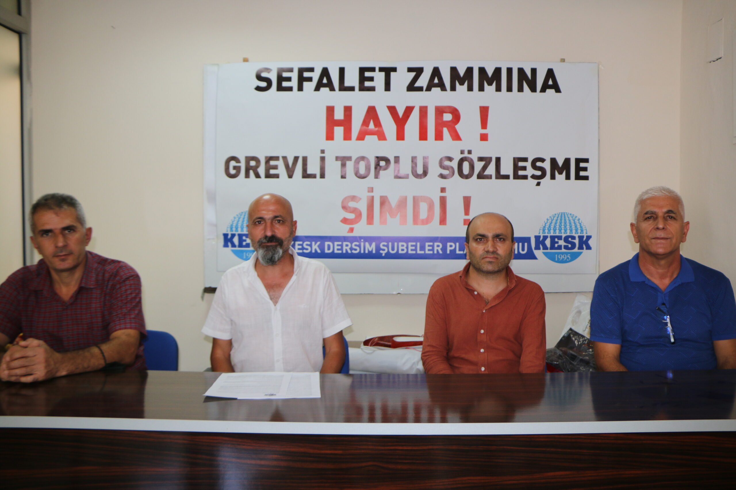 KESK Dersim Şubeler Platformu, Toplu İş Sözleşmesi (TİS) görüşmelerine dair basın açıklaması yaptı. Basın açıklamasında ‘Sefalet Zammına Hayır, Grevli Toplu Sözleşme Şimdi’ pankartı açıldı.
