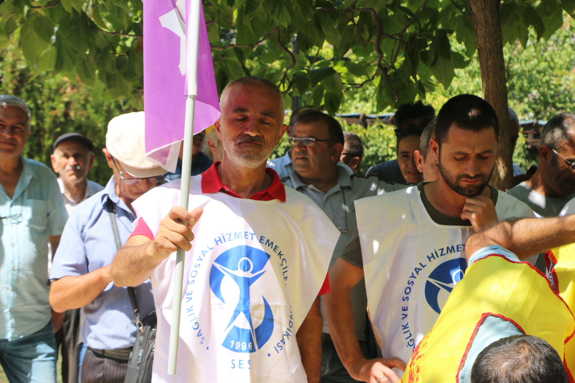 Açıklamayı okuyan Büro Emekçileri Sendikası Dersim Şube Başkanı Özcan Gürtaş, “Toplu sözleşmede 21 Ağustos itibari ile Kamu Görevlileri Hakem Kurulu süreci başlamıştır. Adı üzerinde taraflar arasında hakemlik görevi yapmak için görevlendirilen bir kurulun tarafsız olması şarttır. Ancak mevcut yasalara göre toplu sözleşmede taraf olan hükümet tarafsız olması gereken Hakem Kurulu üyelerinin çoğunluğunu belirlemektedir. Böyle bir Hakem Kurulu’ndan kamu emekçilerinin lehine bir karar çıkmasını beklemek çok zordur” ifadelerini kullandı.