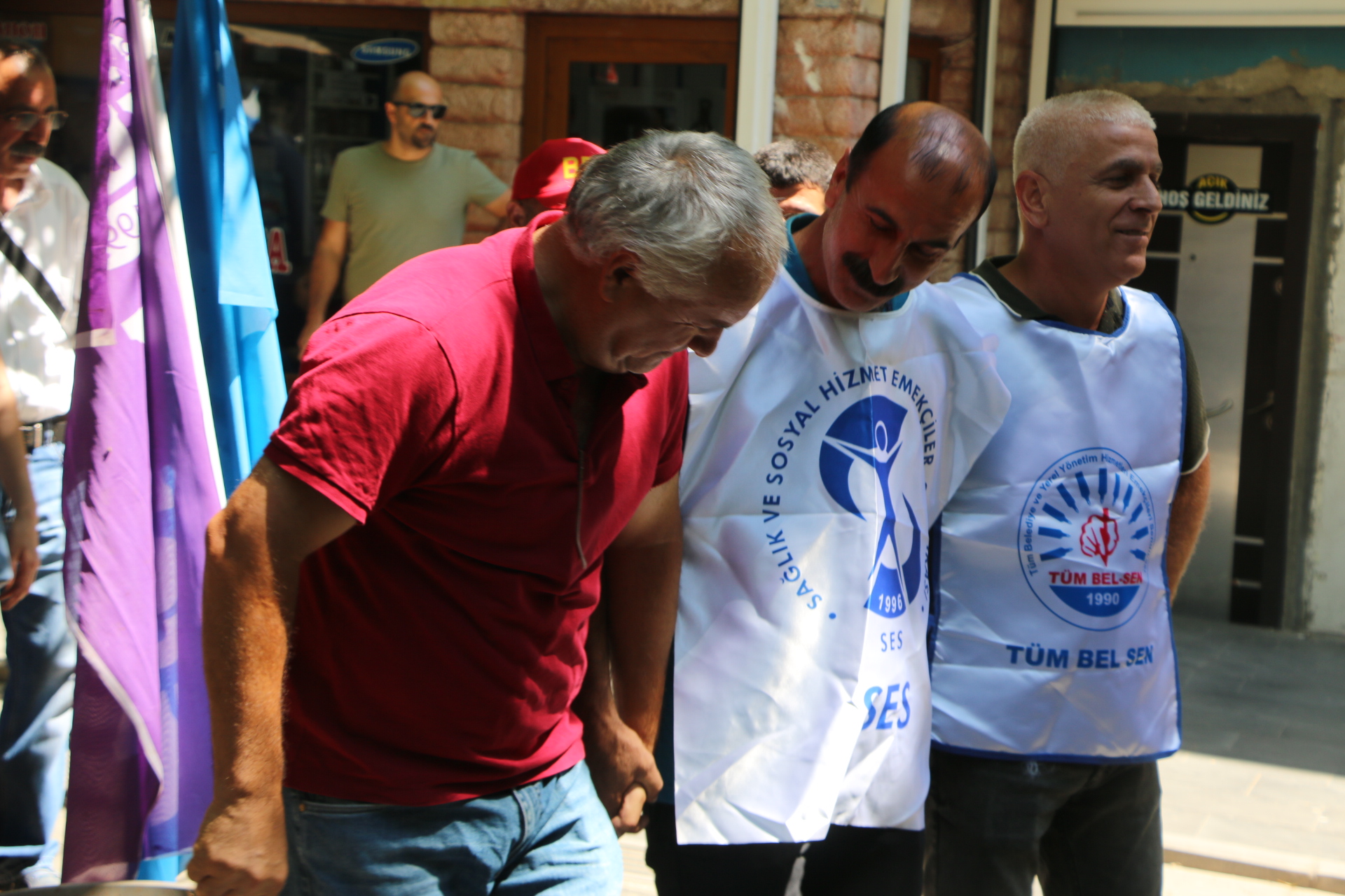 Bütün engellemelere rağmen sloganlarla ve alkışlarla meydana yürüyen emekçiler, basın açıklaması gerçekleştirdi.