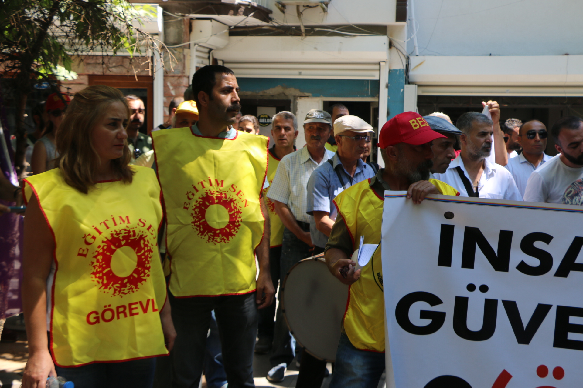 Sanat Sokağı’nda bir araya gelen emekçiler, halaylar çekerek sloganlar atarak taleplerini dile getirdi. Yoğun polis ablukasında geçen etkinlikte Seyit Rıza Meydanı’na yürüyüş yapmak isteyen emekçiler, polis tarafından engellenmeye çalışıldı.