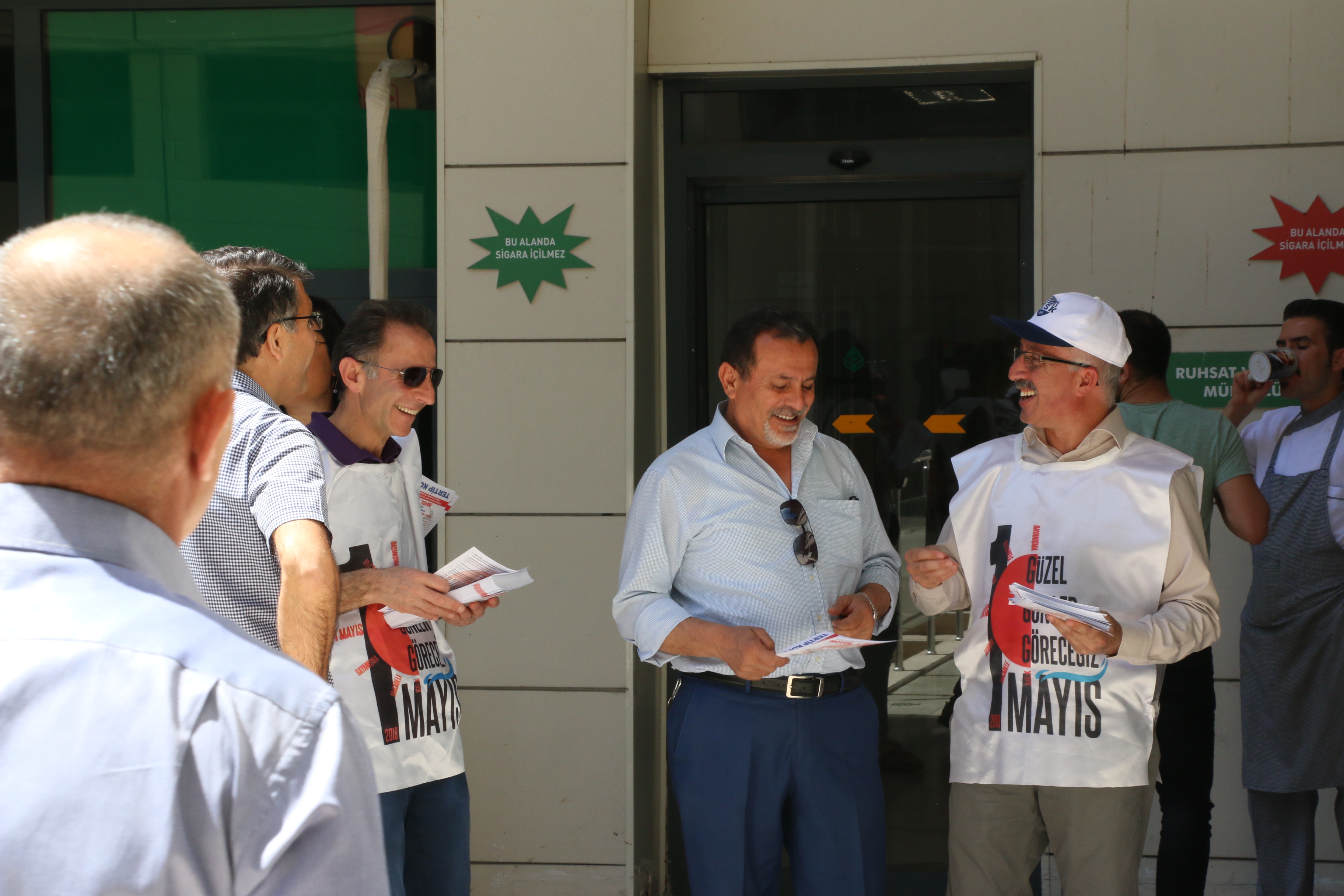 İşçi sınıfının birlik mücadele ve dayanışma günü olan ve Tandoğan’da kutlanacak olan 1 Mayıs’a katılım çağrısı yapmak için KESK Eşbaşkanı Aysun Gezen ve KESK MYK üyesi Elif Çuhadar Çankaya Belediyesi’nde örgütlü bulunan Tüm-Bel- Sen Şube ve Temsilcilik yöneticileri ile birlikte personel yemekhanesinde öğle yemeğinde işçilere ziyarette bulundular.