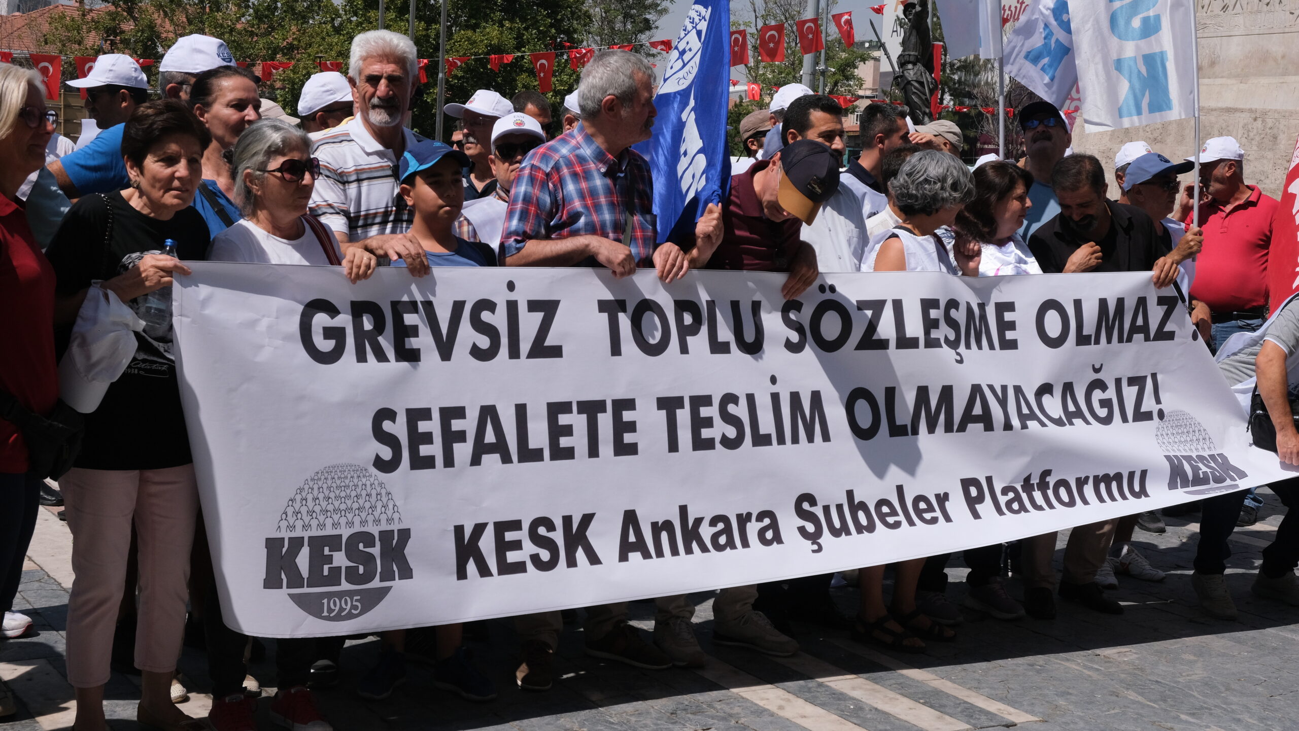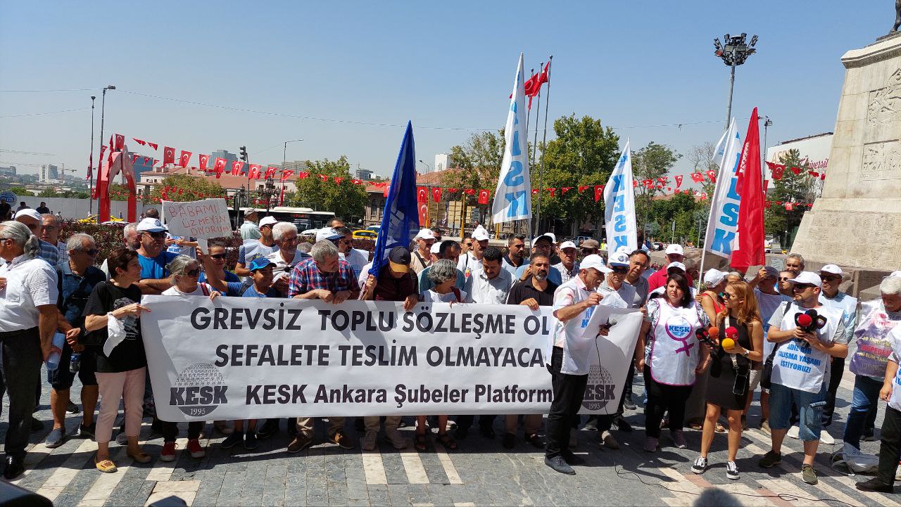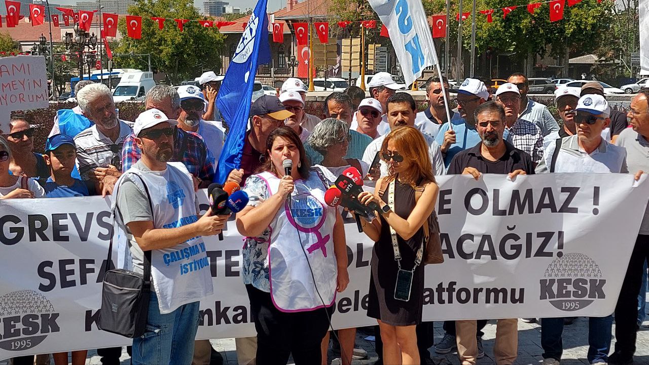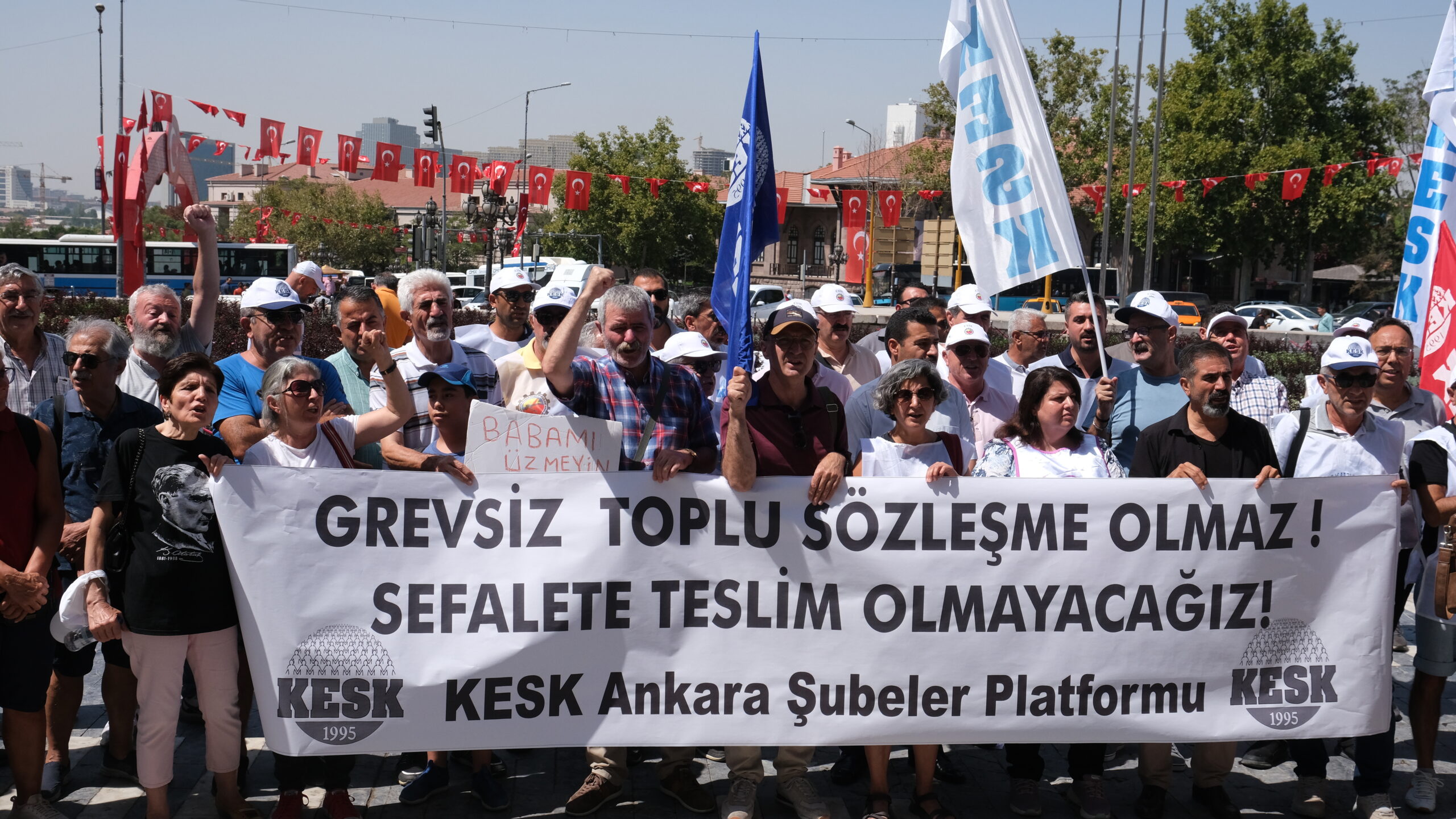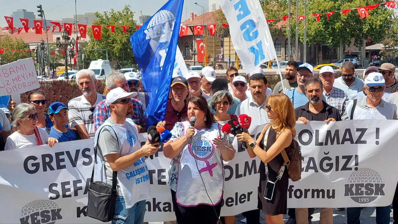 KESK Dönem Sözcüsü Cemal Erdoğan, 11 kişilikli heyetin 7’sini iktidarın belirlediğini belirterek, “Bugün ağustos ayı boyunca oynanan toplu sözleşme orta oyununun son günü. 7 kişiyi iktidarın belirlediği 11 kişilik hakem heyeti bugün milyonlarca kamu emekçisi ve emeklisinin 2024 ve 2025 yılları için alacağı maaş zamlarını belirleyecek. Yani aileleriyle birlikte otuz milyon insanın hangi koşullarda yaşayacağını belirleyecek.