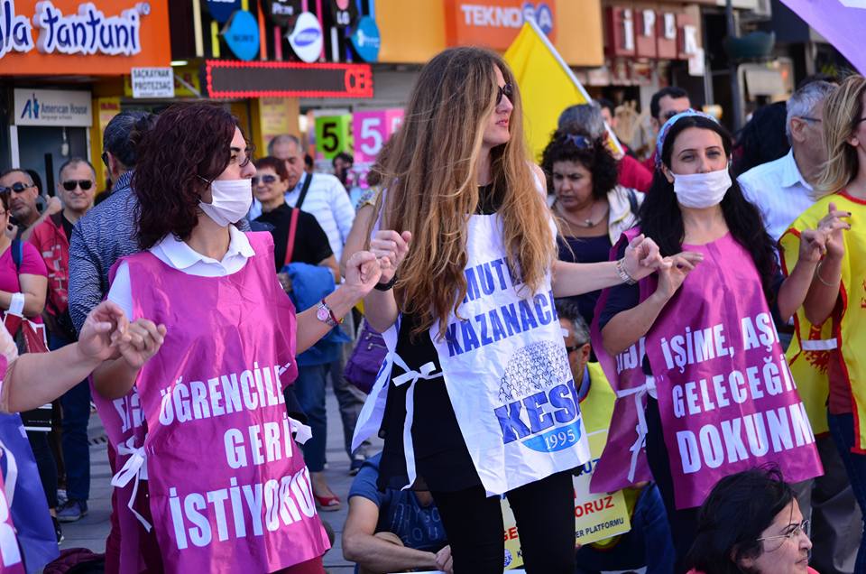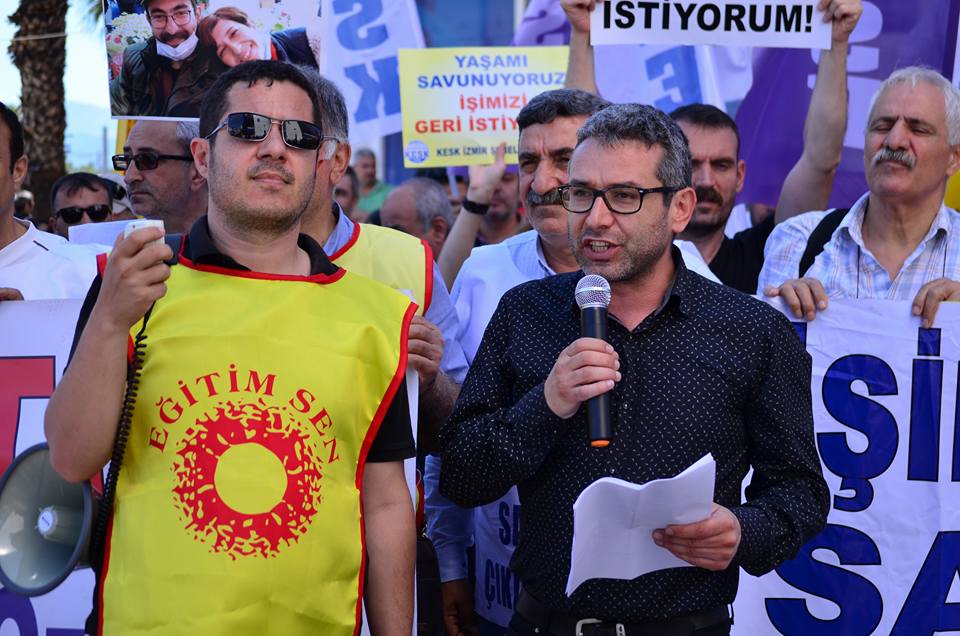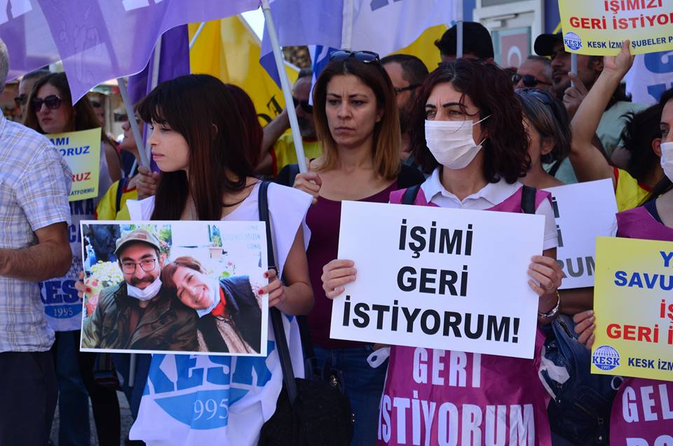 KESK İzmir Şubeler Platformu, görevlerinden uzaklaştırılan ve 73 gündür açlık grevinde olan akademisyen Nuriye Gülmen ve öğretmen Semih Özakça ile birlikte ihraç edilen kamu emekçilerinin durumuna dikkat çekmek amaçlı basın açıklaması ve oturma eylemi gerçekleştirdi.