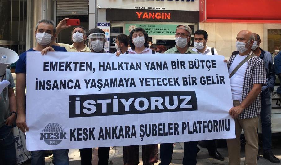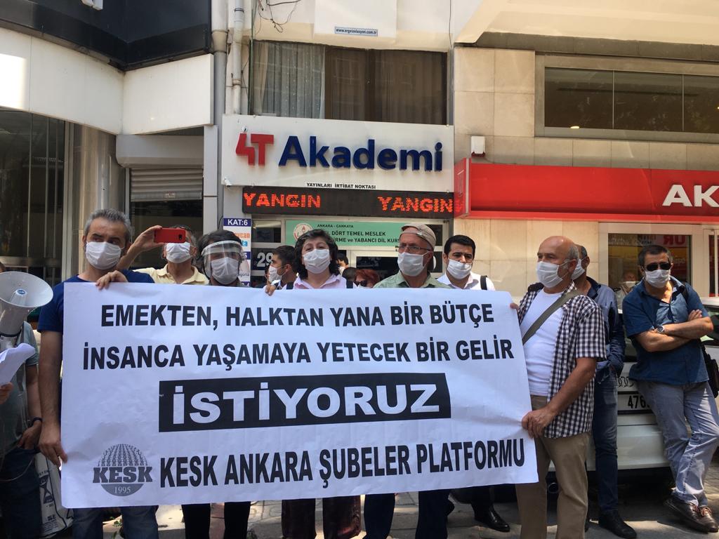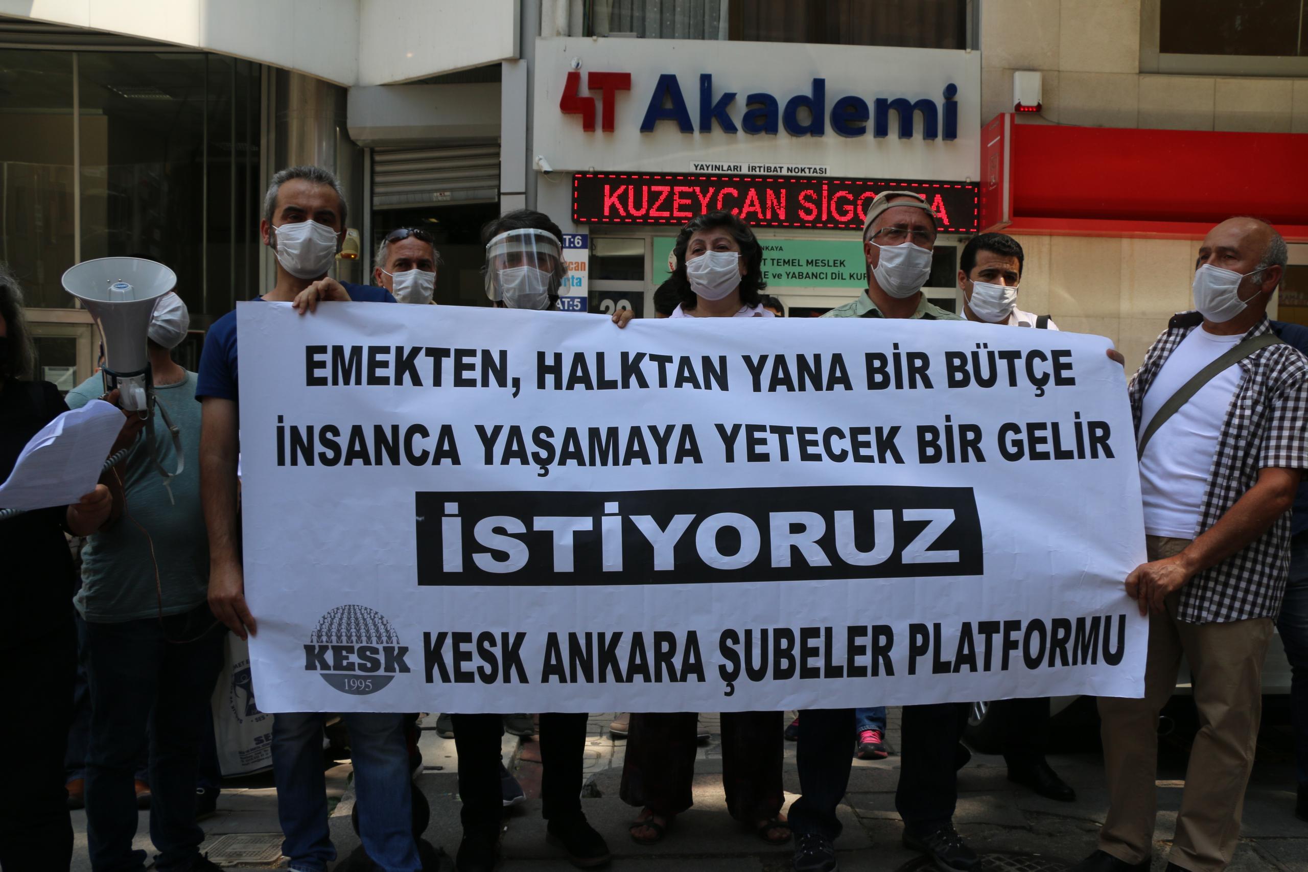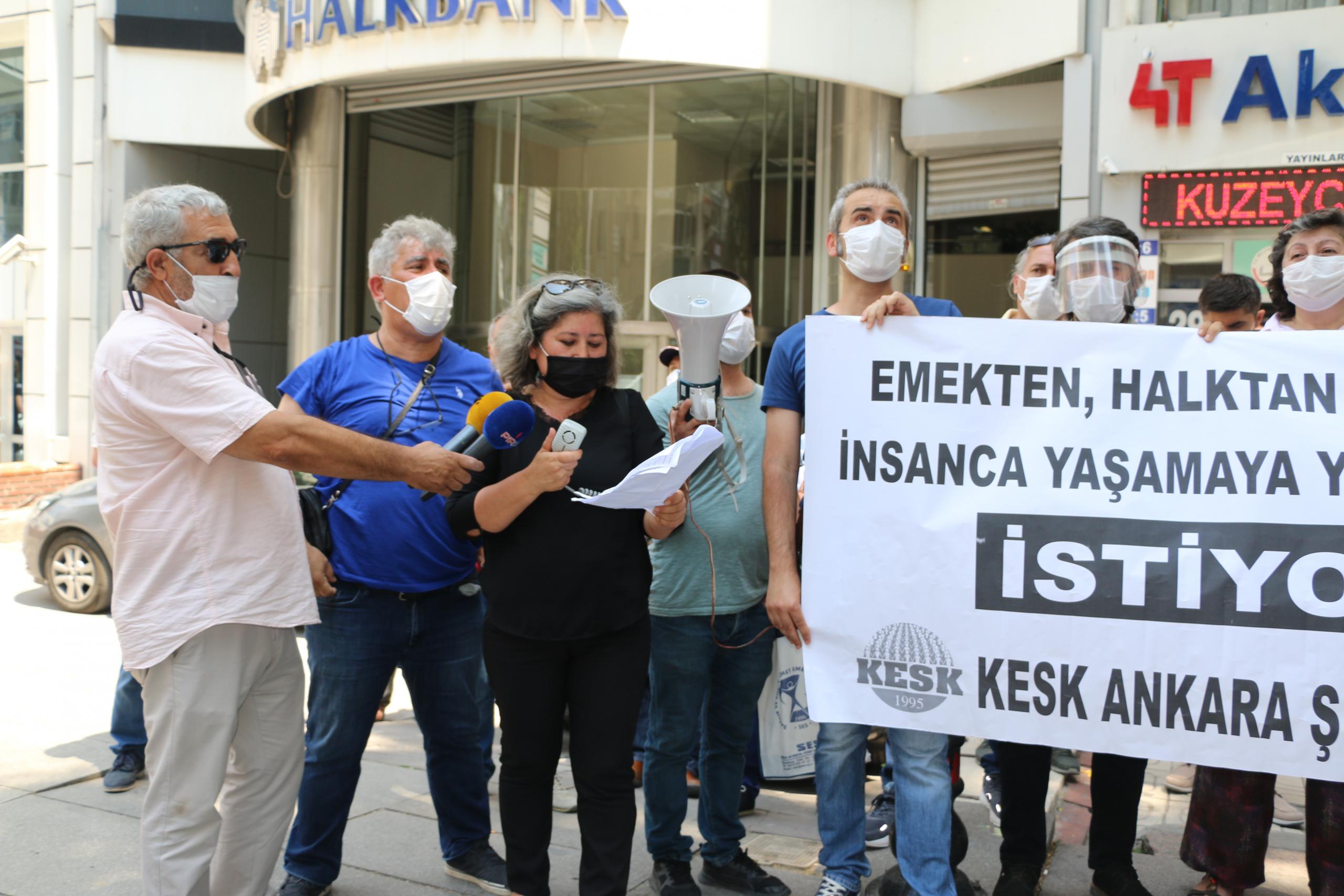 KESK Ankara Şubeler Platformu, TÜİK Enflasyon rakamlarına yansımayan yoksulluk ve hayat pahalılığına karşı insan yaşanacak bir ücret için yapmak istedikleri basın açıklamasına, polis pandemi ve Valilik kararını göstererek izin vermedi.