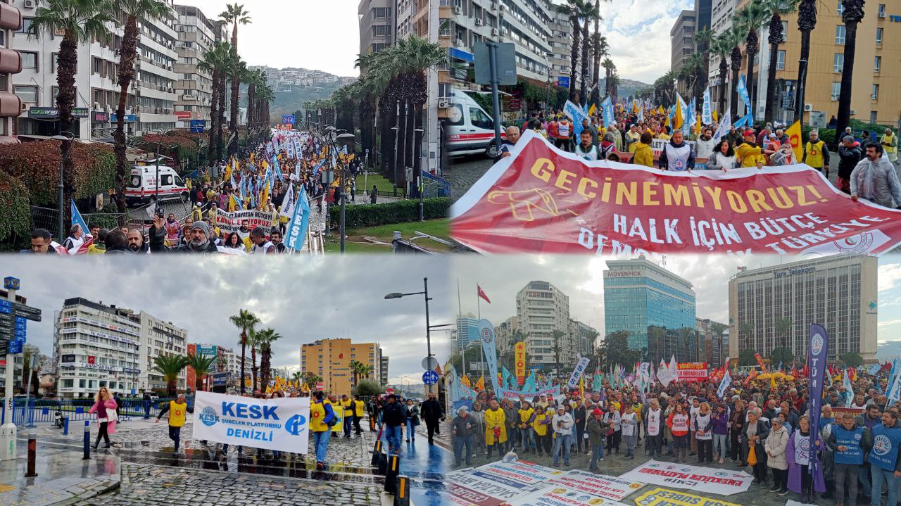 PİRHA- Meclis’te 2026 yılı bütçe görüşmeleri sürerken Kamu Emekçileri Sendikası Konfederasyonu (KESK), İzmir’de “Sermayenin bütçesine hayır, halk için bütçe, demokratik Türkiye” şiarıyla miting düzenledi. Mitingde bütçenin yoksulluğu arttıracağını vurgulayanarak, “Bütçe hakkımız için ezilenleri ortak mücadeleye, genel grev genel direnişe çağırıyoruz” denildi.