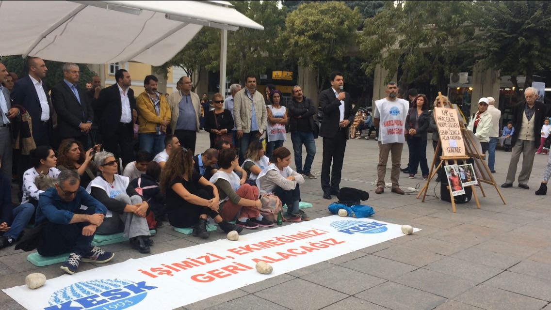 PİRHA-KESK İstanbul Şubeler Platformu üyeleri, OHAL kapsamında ihraç edilen ve açığa alınan üyeleri için Bakırköy Özgürlük Meydanı’nda oturma eylemde, “Haksız hukuksuz ihraçlara hayır, işimizi istiyoruz” dedi.