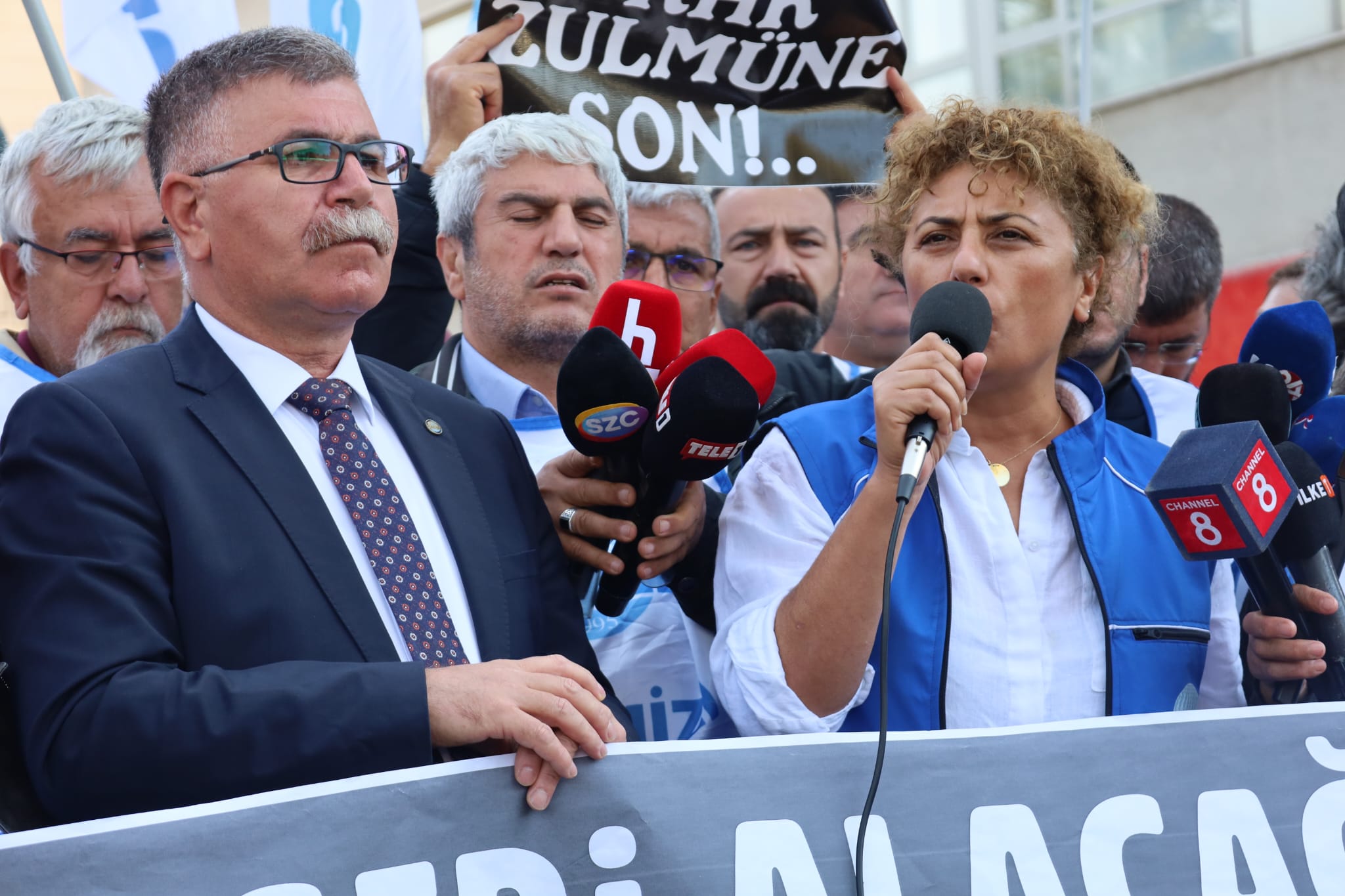 “Hiçbir darbe döneminde, darbelerini başarılı olduğu dönemlerde dahi bu kadar kamu emekçisi ihraç edilmemişti. Darbe süreçlerinde kimse bu kadar etkilenmemişti. Hiçbir darbe süreci 10 sene boyunca kurumların kapatılmasıyla devam etmemişti. 125 bin kamu emekçisi ihraç edildi. Niye ihraç edildiler? İhraç sebepleri, bu ülkede emekçinin hakkını almak için yapmış olduğumuz eylemlere katılmaktı. Bu ülkede barışın tesis edilmesini talep etmekti. 8 Mart’larda kadına yönelik şiddetin son bulmasını talep etmekti. Nitelikli anadilde eğitim talebiydi.